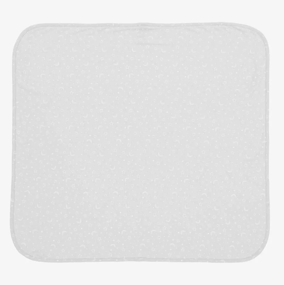 A lovely pale grey blanket for baby boys and girls by Kissy Kissy, patterned in a charming white star and moon design. Made in a double layer of beautifully soft Pima cotton jersey, it is ideal for use in the nursery or when out and about in the pram or stroller.
