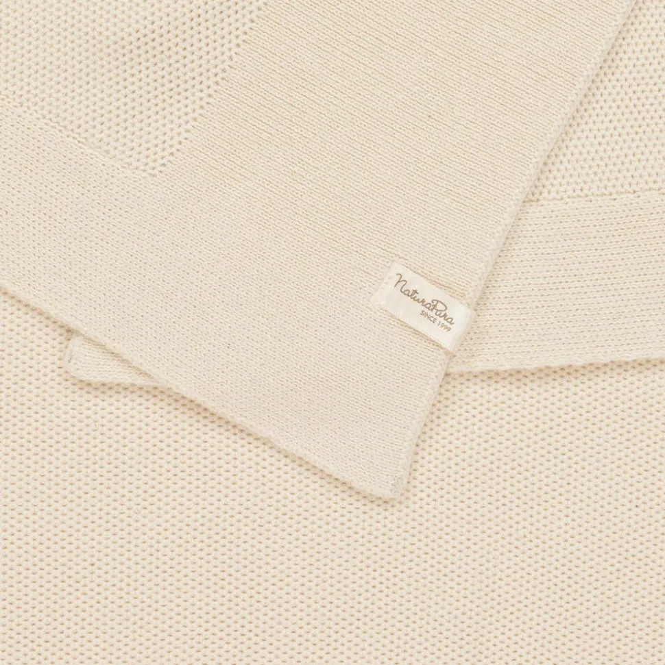 Ivory blanket by Naturapura, suitable for baby boys and girls. Knitted in pure, non-dyed and unbleached organic cotton, baby will feel comforted when enveloped by its soft fabric. It is ideal to use in the pram, car seat and nursery.