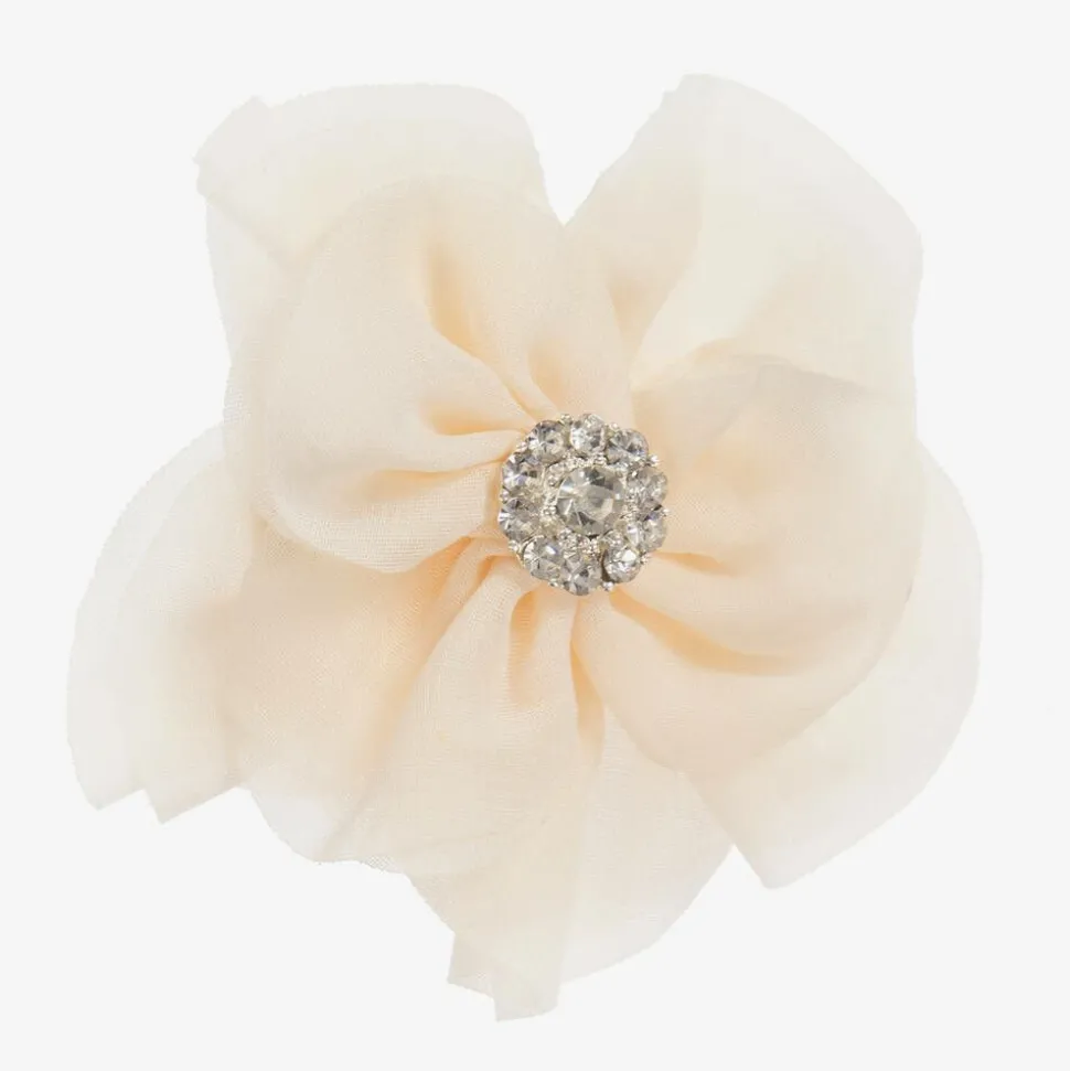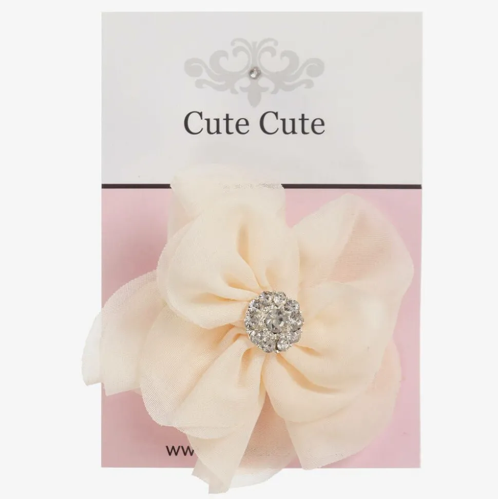 Girls beautiful, ivory hair clip by Cute Cute. Handmade, it has a pale blush pink chiffon flower and sparkling diamanté centre.