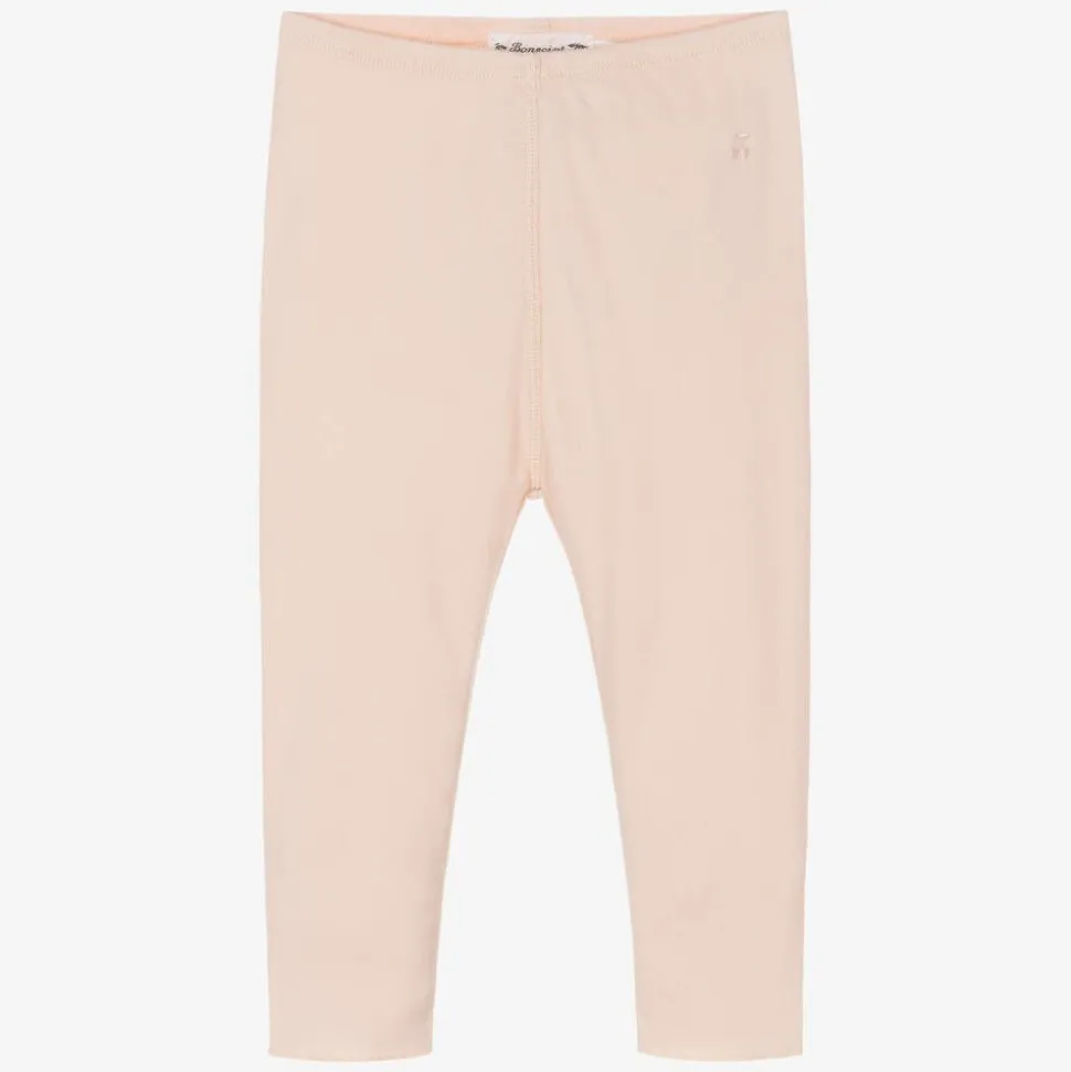 Pale pink leggings for little girls by Bonpoint, made in beautifully soft cotton jersey for comfort. Featuring a stretchy waist for a great fit, it has the brand's cherry logo delicately embroidered near the waist.