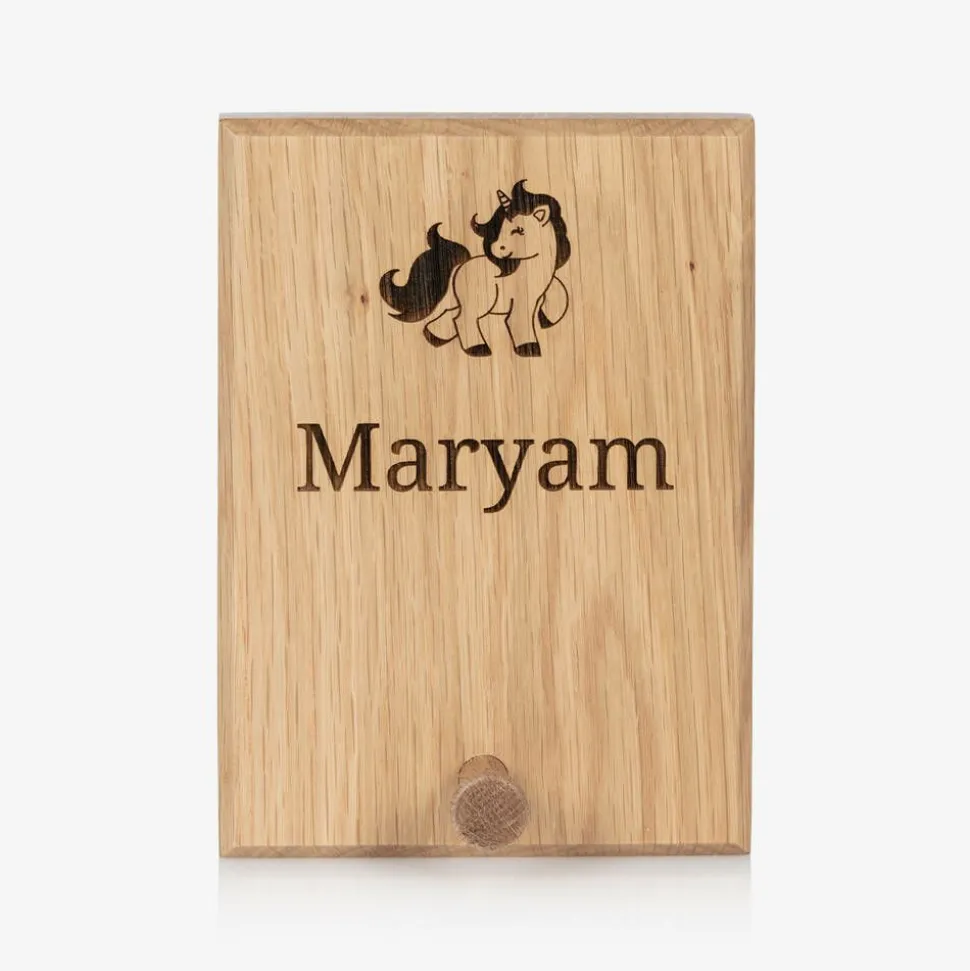 A wooden peg hook for girls from Treat Republic, handcrafted with a playful unicorn design. A lovely addition to your child's room, this solid oak hook can be engraved with your little one's name adding that personal touch. Easy to hang, there are two keyhole openings on the back.