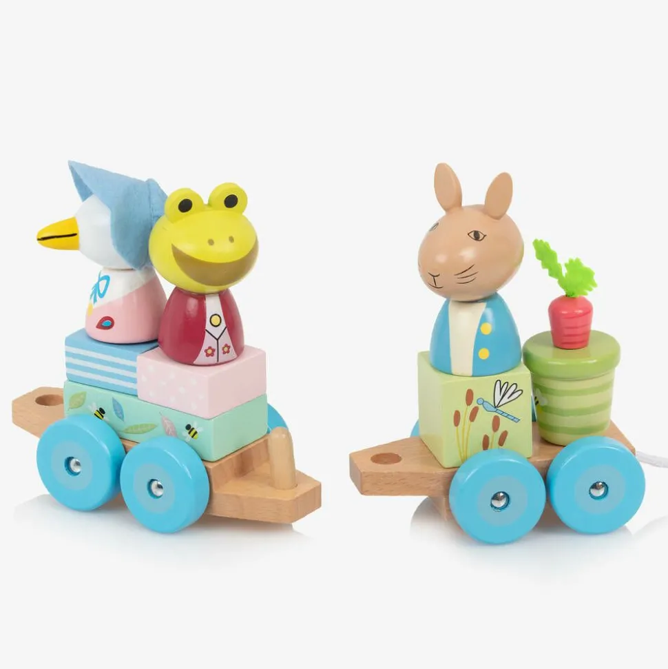 A charming Peter Rabbit wooden puzzle train for younger boys and girls by Orange Tree Toys, inspired by the classic tales of Beatrix Potter. Featuring a selection of beloved characters, this fun interactive toy encourages hand-eye coordination as your little one has fun stacking the colourful blocks. The string on the front helps to develop movement and coordination as the train is pulled along on its next exciting adventure.