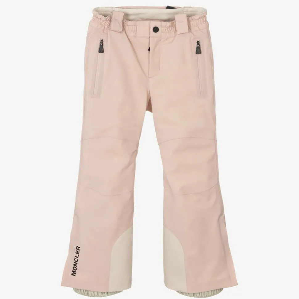 High performance pink ski salopettes for girls by luxury designer, Moncler Enfant. Forming part of the brand's esteemed Grenoble collection, these durable ski trousers are designed for intensive sport in harsh conditions, with Primaloft technology for superior breathability and thermal insulation. The garment is fitted with impressive RECCO technology, the advanced rescue technology to help locate lost skiiers. Bold branding on one leg completes the slope-ready style.