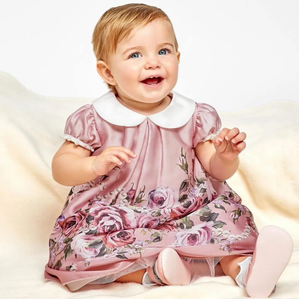 Patent pink baby shoes by Early Days, made in flexible and lightweight leather with adorable scalloped edges.