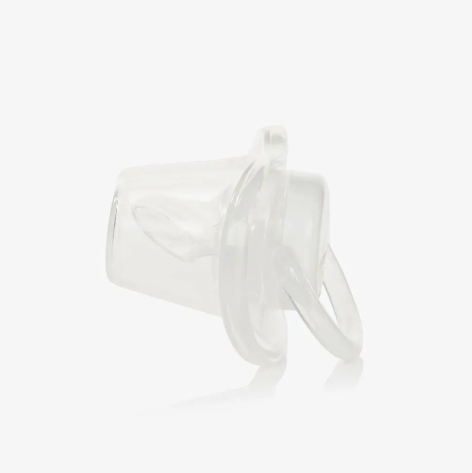 Pink bottle and dummy set for baby girls by Guess, printed with adorable branded teddy bears and honey pots. The large bottle, small bottle and dummy each have hygienic silicone teats in a comforting shape. The bottles come in two useful sizes and fasten with leak-proof screw caps to prevent any spills. Completing the lovely set, it comes with a branded dummy clip which clips onto clothing to prevent the dummy from getting lost.