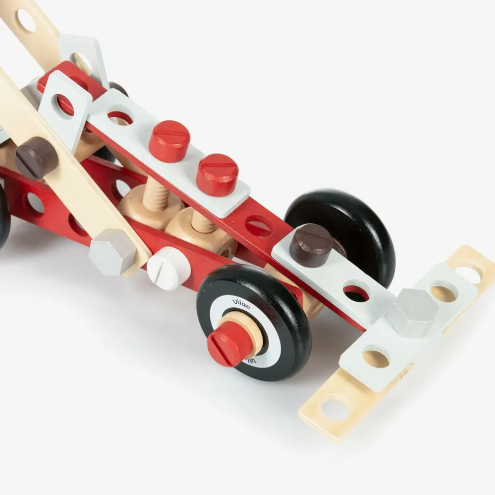 A red wooden workbench toy for boys and girls by Vilac, ideal for your little one to explore the world of DIY. Inspiring creativity and hands-on learning, this fun construction toy ensures hours of play with a variety of realistic tools. The sturdy workbench has a rotating carpentry clamp on one side, hanging space for the tools and useful drawers for extra storage. It comes with instruction cards and a selection of nuts, bolts and wooden pieces to assemble, improving those important fine motor skills.