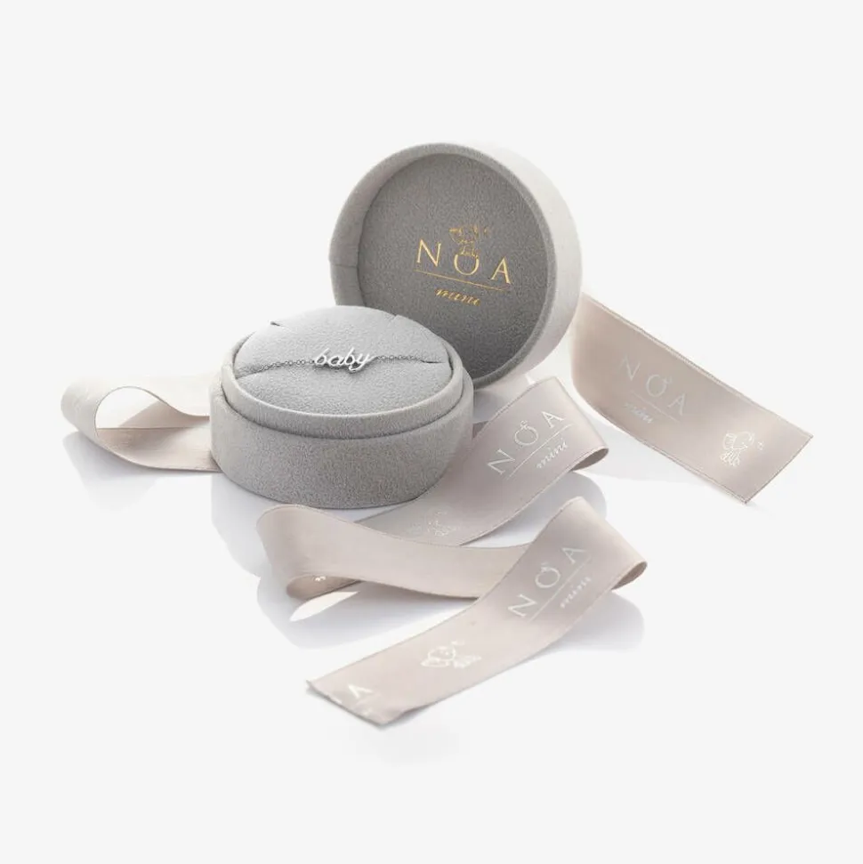 A luxurious white gold bracelet for boys and girls by NOA Mini, carefully handcrafted in Italy. A special gift to welcome newborns into the world, it is set on a delicate 18 karat white gold chain with a charming 'Baby' signature. This timeless keepsake can be passed down through generations and kept as a cherished heirloom. It is exquisitely presented inside a velvet bow-tied jewellery box, with an adorable Steiff elephant for your little one to cuddle for life.