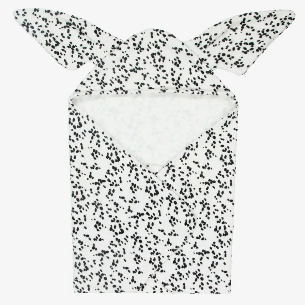 Super cute and absorbent, this hooded cotton towel for baby boys and girls is by Swedish brand Elodie, made in soft velour with a towelling underside. Just right for a fun look after bath time or a swim, it is patterned with black Dalmation spots and has large 3D doggy ears on the hood.