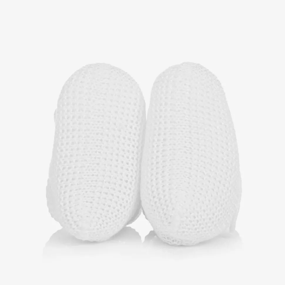 White Cotton Knit Baby Booties