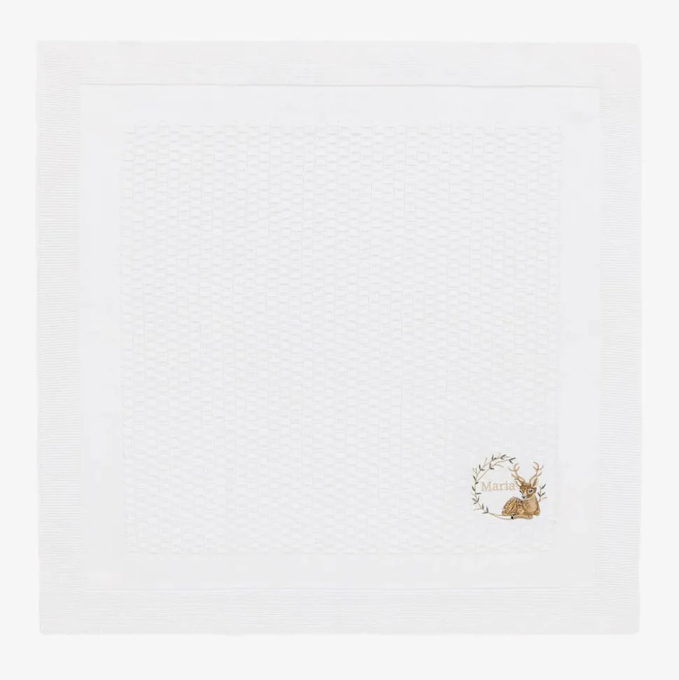 White Cotton Personalised Reindeer Blanket (88cm)