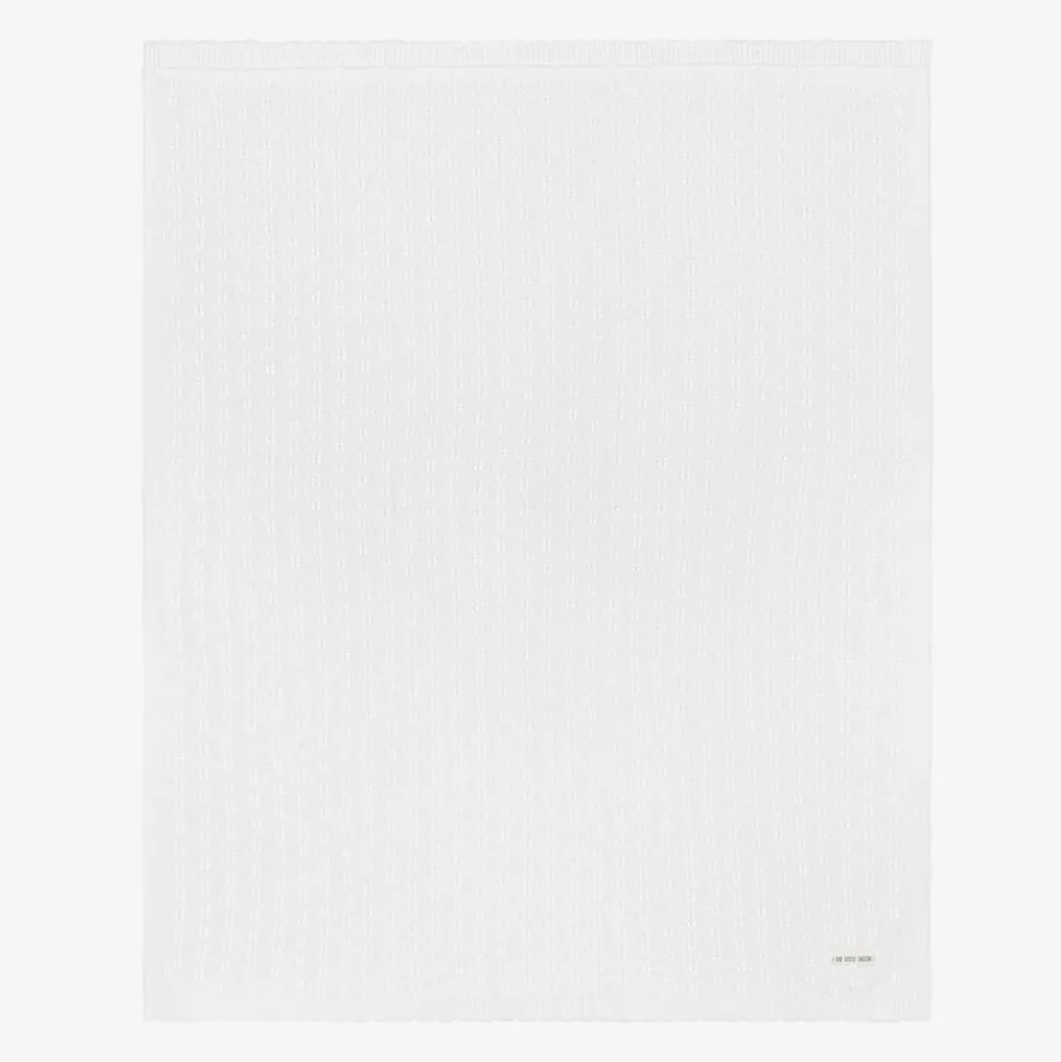 Sweet white blanket for baby boys and girls by The Little Tailor. Knitted in soft cotton with a pointelle design, it makes a lovely, neutral addition to your little one's nursery.