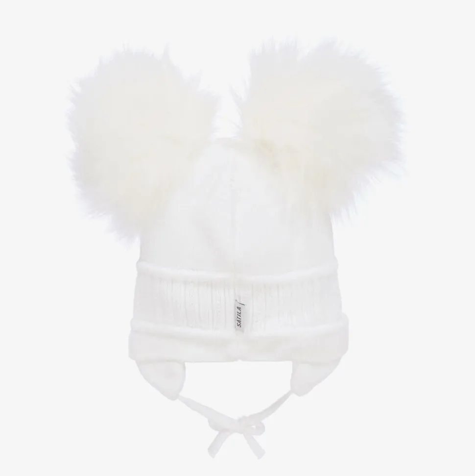 White Tindra Double Pom-Pom Hat