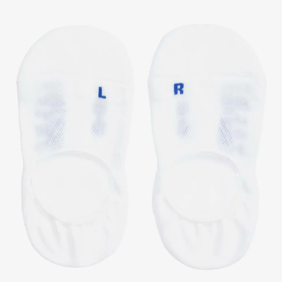 White trainer socks for boys and girls by Falke. Made in a soft polyester blend, they have an anti-slip pad inside the heel for a secure, comfortable fit. Designed for moisture control and comfort, with a lightweight cushioned sole.
