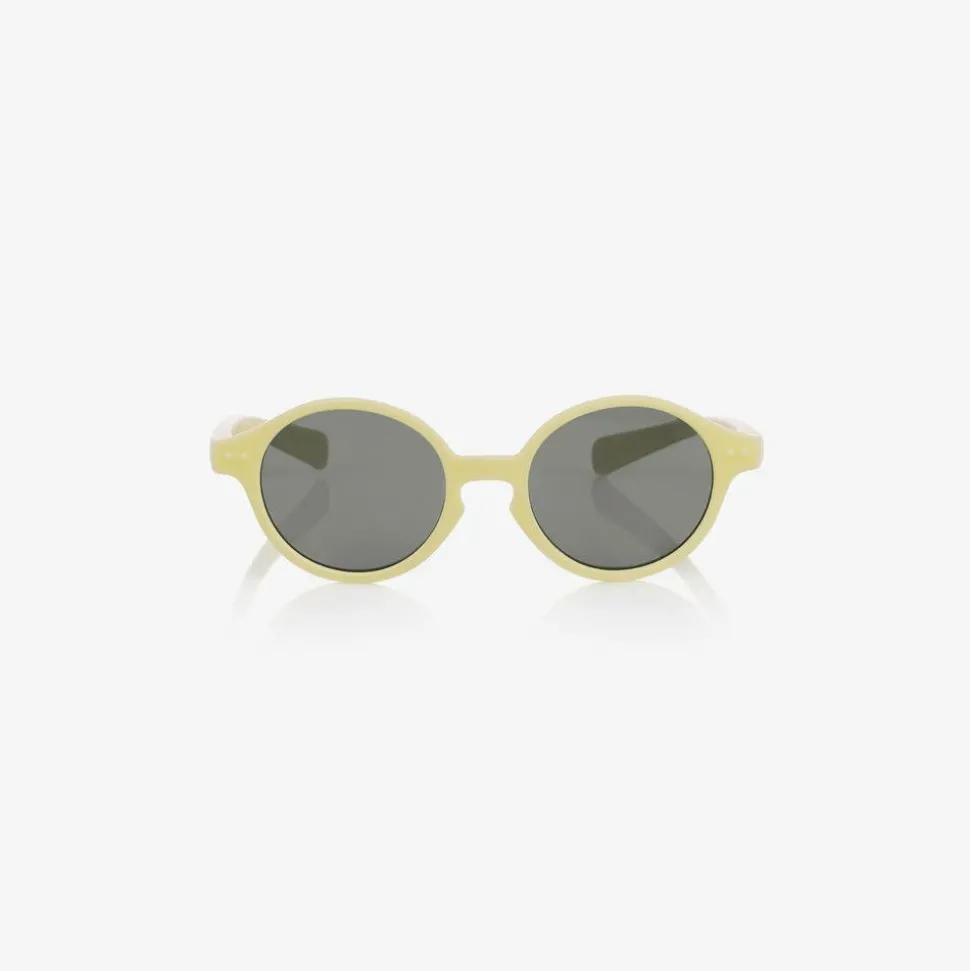 Yellow sunglasses for younger boys and girls, by IZIPIZI. The 100% UV protective grey lenses are polarised and have a category 3 filter offering protection against bright sunlight. They have matte yellow plastic frames and smaller sizes come with a detachable yellow silicone strap to help keep them in place on your little one's head.