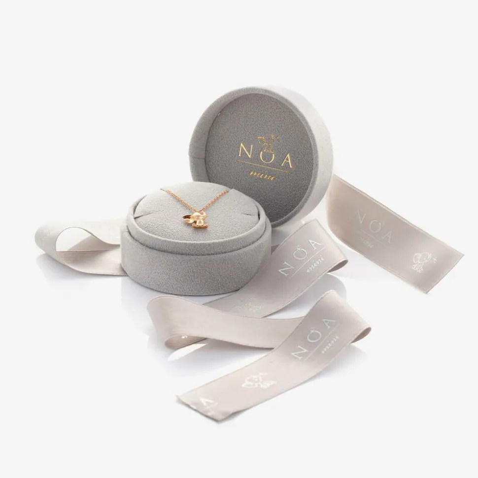 Delicate rose gold necklace for little girls by NOA Mini, beautifully hand crafted in Italy. Designed as their first fine jewellery piece, this timeless keepsake is designed to be passed through generations. Set on a fine 18 karat rose gold chain, the charming elephant pendant is detailed with exquisite white diamonds. Ideal as a gift for a special new arrival, it comes presented in a bow-tied velvet gift box with a lovely Steiff elephant toy. The cuddly Steiff elephant toy can be your baby's first friend, reminding them of their special bracelet for years to come.
