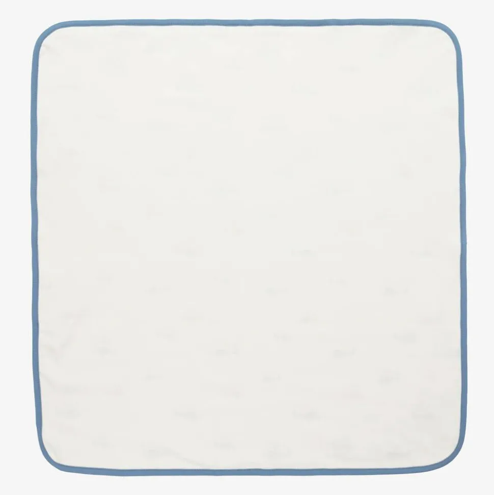 Printed with a fun helicopter pattern, this ivory blanket for baby boys is by Kissy Love. It has a blue ribbed border and is made in a double layer of super soft Pima cotton jersey that is gentle against delicate skin.
