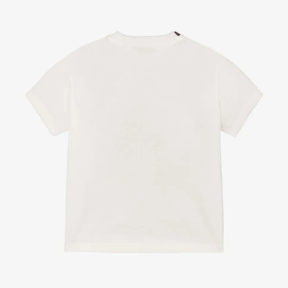 Off-white T-shirt for baby boys by Dolce & Gabbana, made in soft cotton and signed with a logo label. Drawing inspiration from the Sicilian capital of Palermo, this charming design features the luxury fashion house's branding and a classic car printed on the front in reds, beiges and browns. Helping with dressing, the shoulder poppers are hidden for neatness.