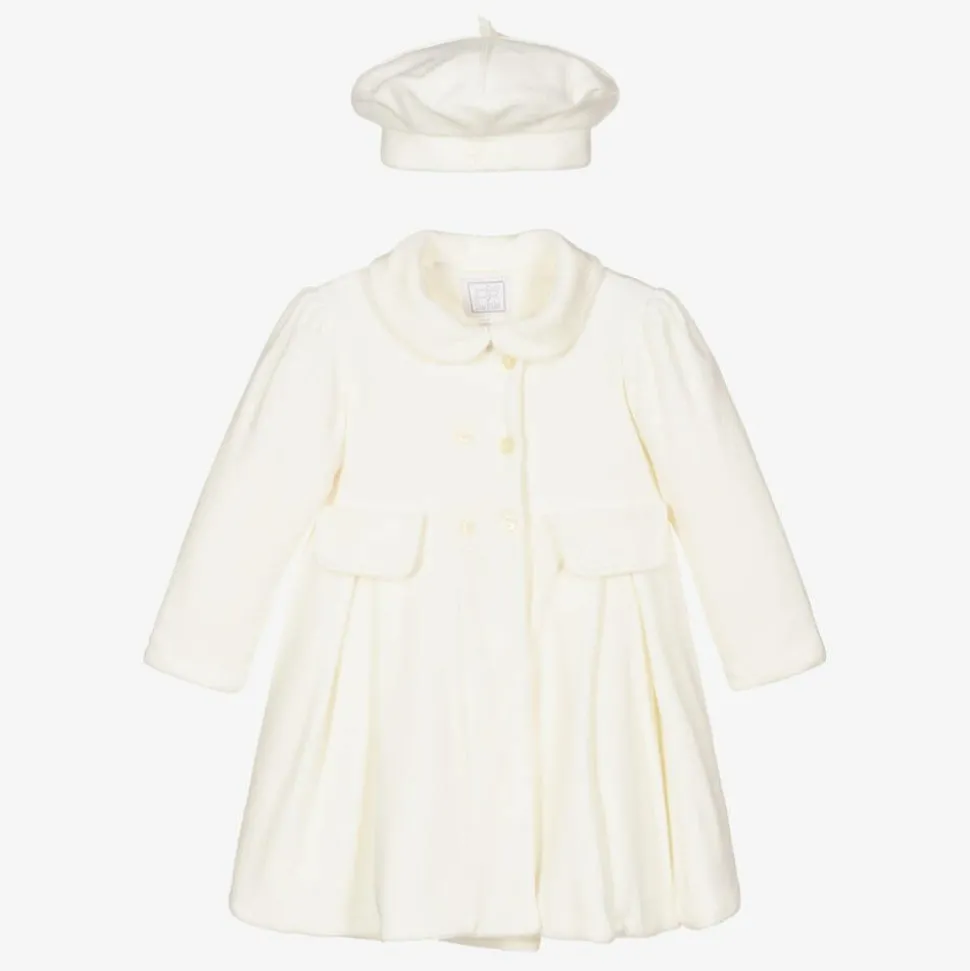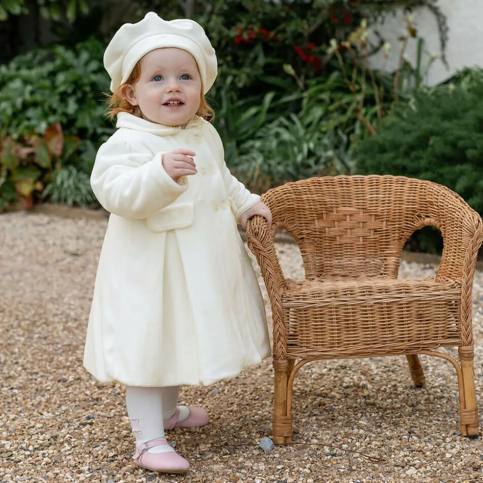 Baby Girls Ivory Velour Coat & Hat Set
