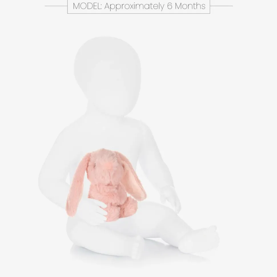 Sweet and pretty, this pink bunny rattle toy for baby girls is by Aurora. Handmade from soft velvety plush, it has a cute embroidered face and long floppy ears. Lovely for little hands to hold, it has soft padding with beads that rattle when shaken, for baby to explore new textures and sounds.