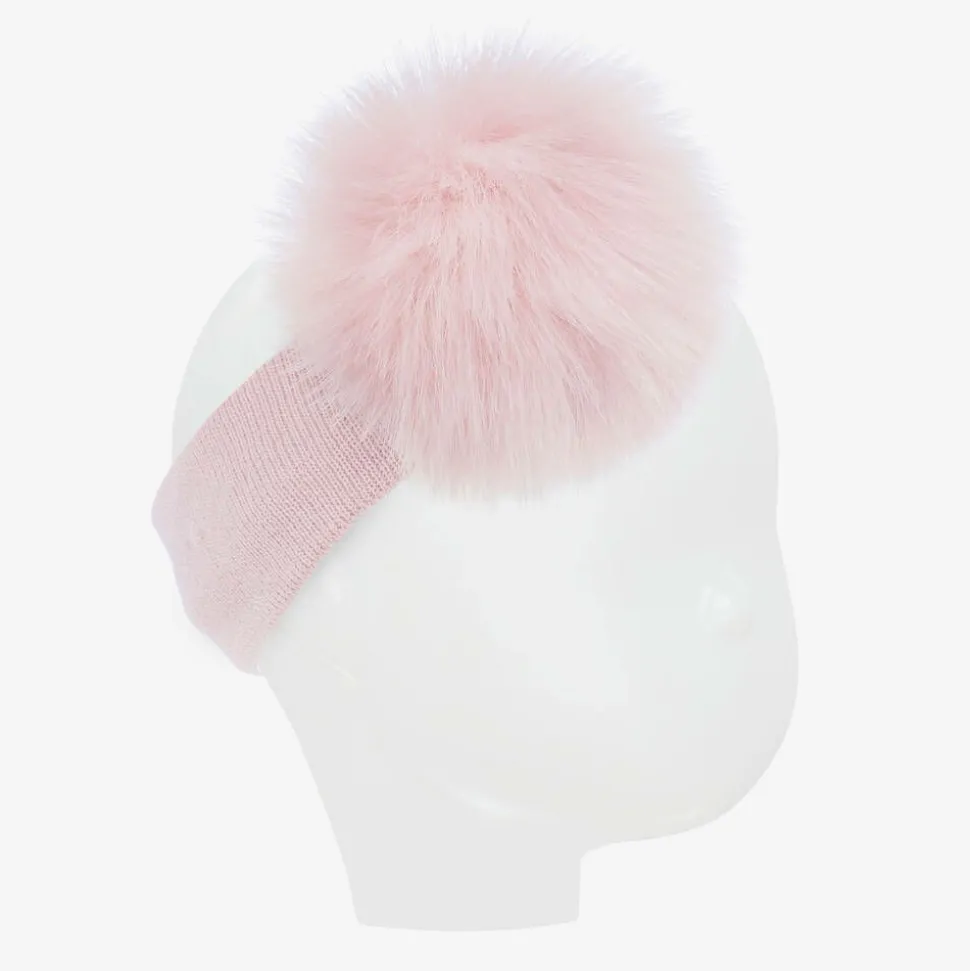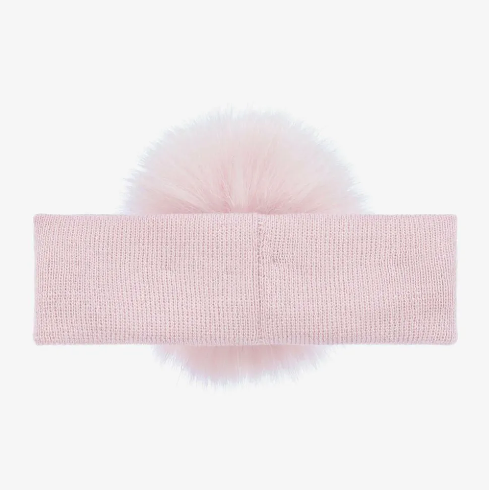 Baby Girls Pink Wool Knit Pom-Pom Headband