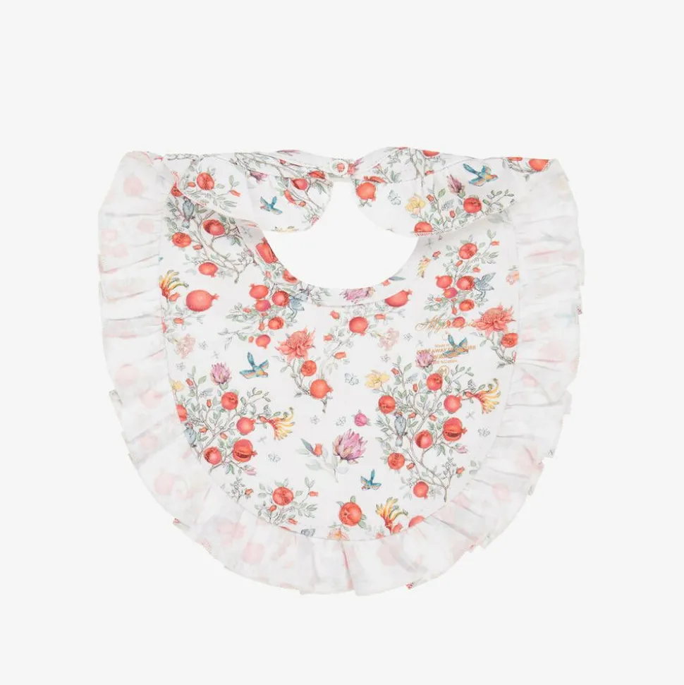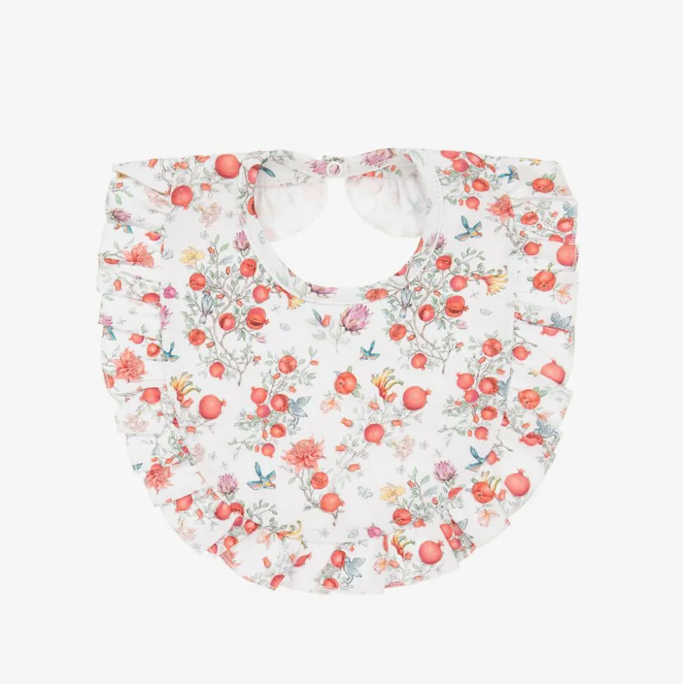 Baby Girls White Supima Cotton Pomegranate Bib