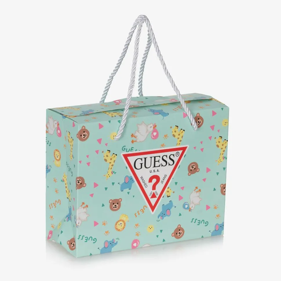 Patterned in a cute and colourful animal friends print, this beige marl babysuit set for boys and girls is by American brand Guess. It is made in a soft cotton-blend jersey for comfort against delicate skin. The two piece babygrow has an embroidered logo and popper fastenings on the front of the top, with a gently elasticated waist on the trousers. The set is complete with a matching hat and comes with a coordinating gift bag, making it a lovely gift for a new arrival. This product contains organic cotton fibre.