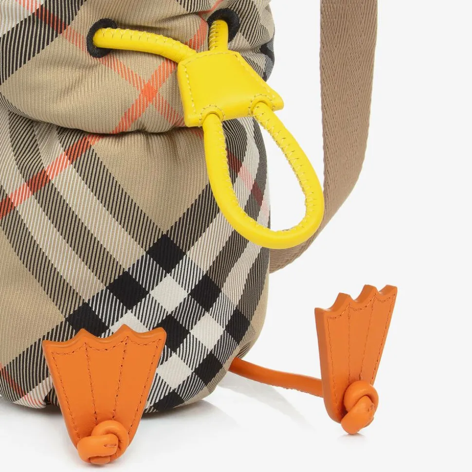 For instant designer appeal, this fun bottle holder for boys and girls by British brand Burberry is patterned with the luxury designer's iconic check in orange, black and white. Smooth and lightweight, it has colourful duck-themed leather trims and a practical drawstring to secure the bottle safely inside. The woven shoulder strap can be easily adjusted and features signature B-cut hardware.