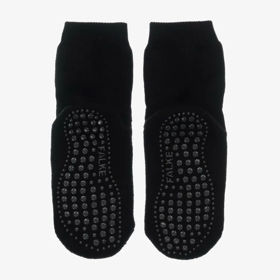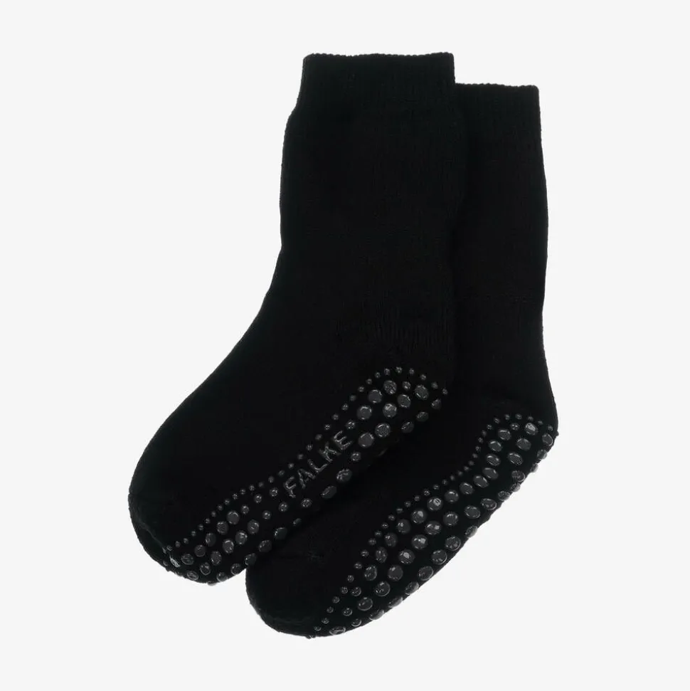 Durable and functional, these black slipper socks for boys and girls are from Falke. They are made in a super soft cotton and wool blend, cushioned for comfort with stretchy elasticated trims. These high-quality socks are finished with rubberised pads on the soles, offering anti-slip stability for playful kids.