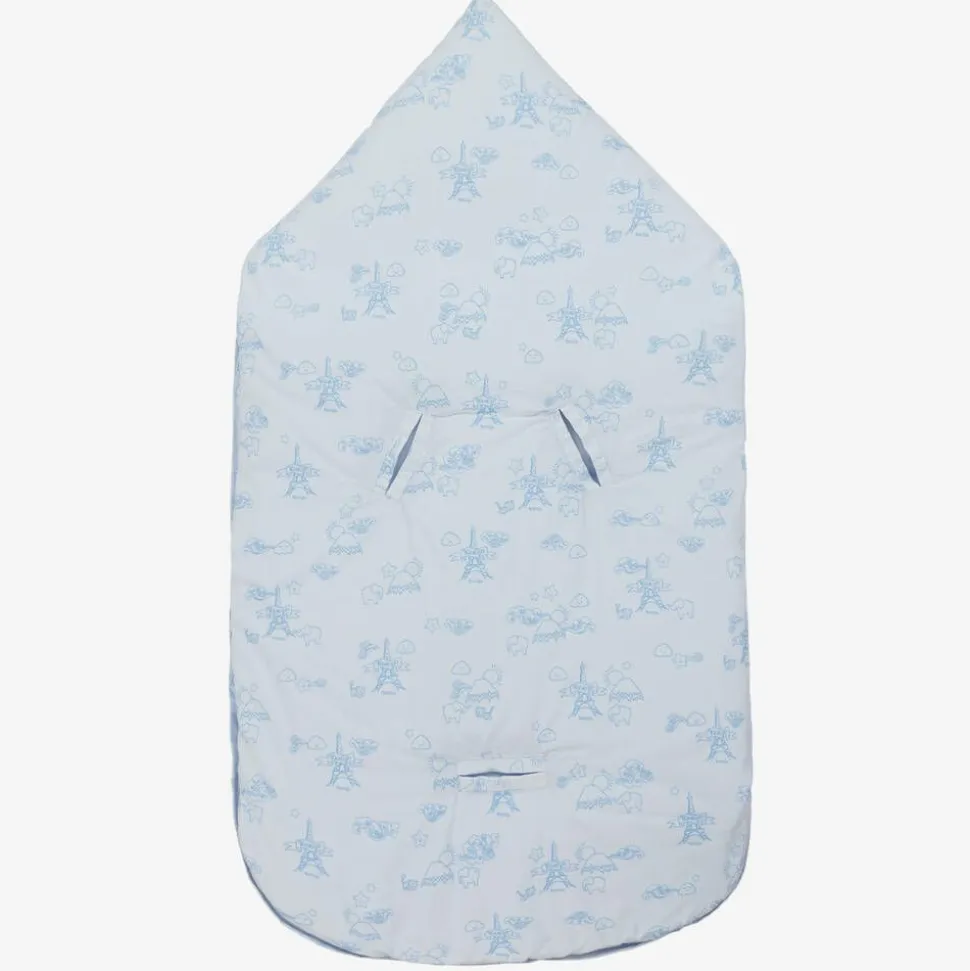 Patterned in a cute animal and Eiffel tower print, this pale blue nest for baby boys and girls is by KENZO KIDS. Made in smooth cotton poplin and softly padded for cosy comfort, it fastens with a concealed zip down the side and along the bottom. The popper-fastening hood can be opened and laid flat as a pillow, and the handy openings on the back allow for use in the car seat or stroller.