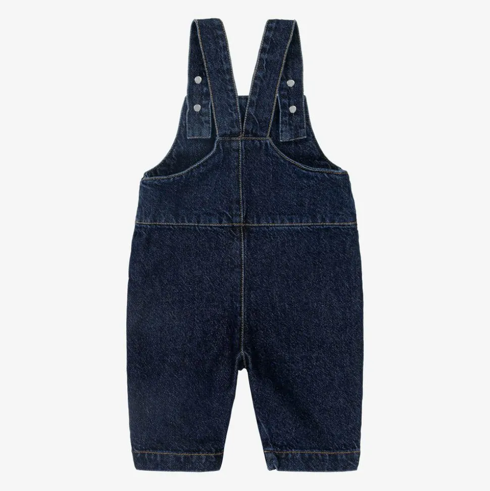 Adorable for baby boys and girls, these deep blue denim dungarees are by Bobo Choses. The Barcelona-based label has designed these all-in-ones with quirky patch pockets in ivory, yellow and green colour-blocking, one of which features little squirrel embroidery. Made in soft, non-stretch cotton, they secure with easy-to-use poppers between baby's legs and have useful buttons on the shoulder straps.