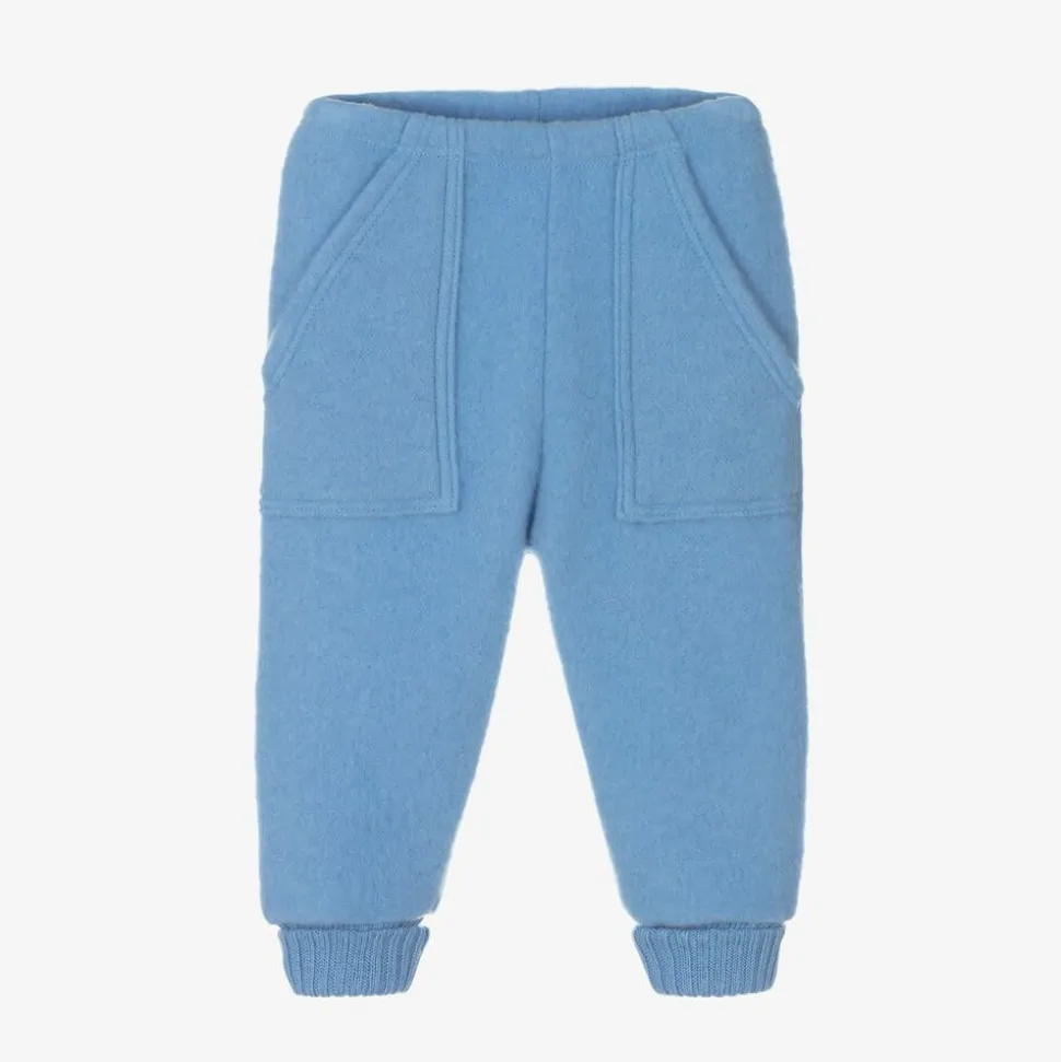 Blue thermal joggers for little boys and girls, by Danish designer Joha. Expertly made in luxuriously soft and insulating Merino wool, they have a super comfortable elasticated waist, and stretchy ribbed trims. Featuring pockets on the front, they are designed to absorb moisture and regulate the body's temperature, making the perfect layer for an extra warm fit.