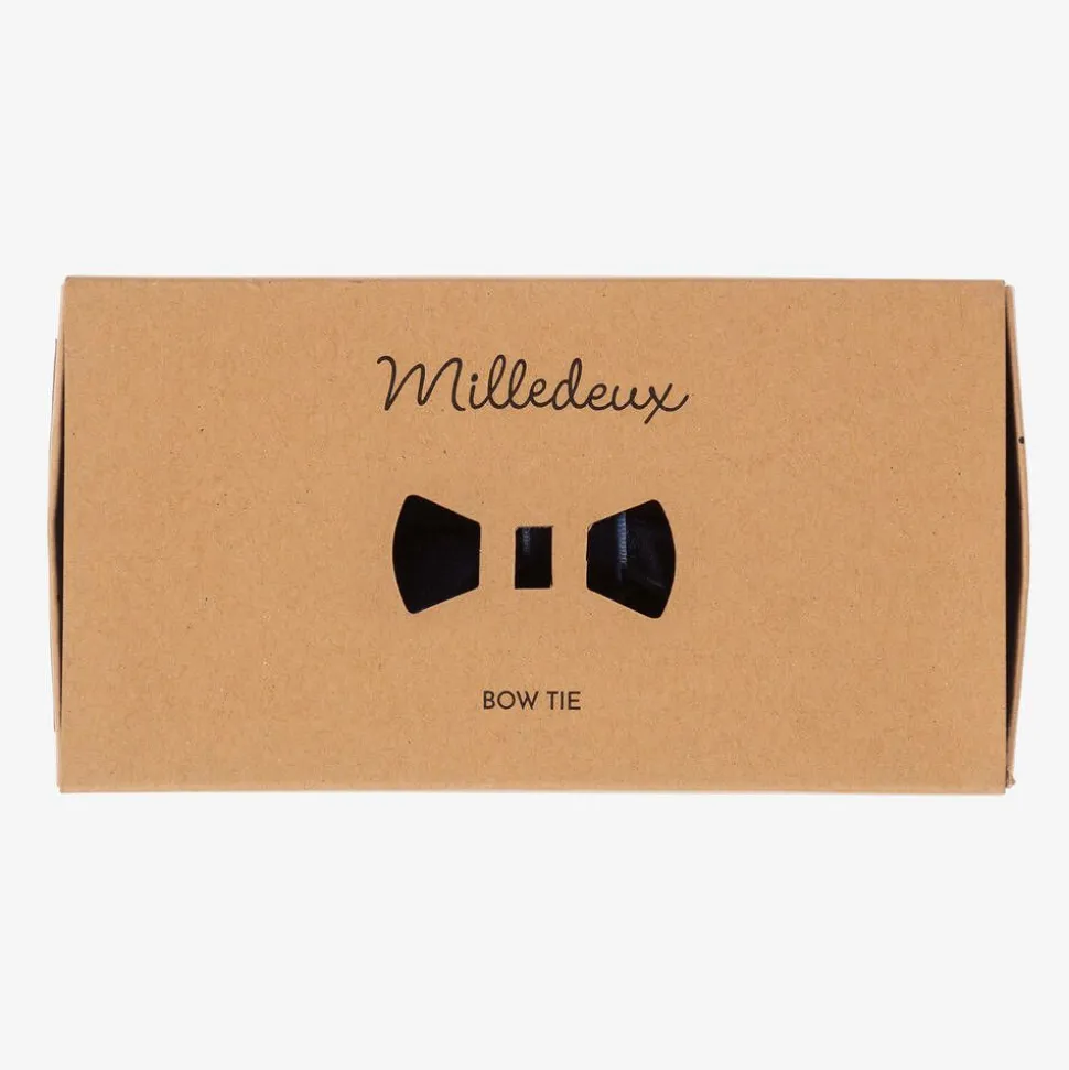Smart navy blue bow tie for boys by Milledeux. It is made in soft velvet ribbon and has an adjustable neck strap.