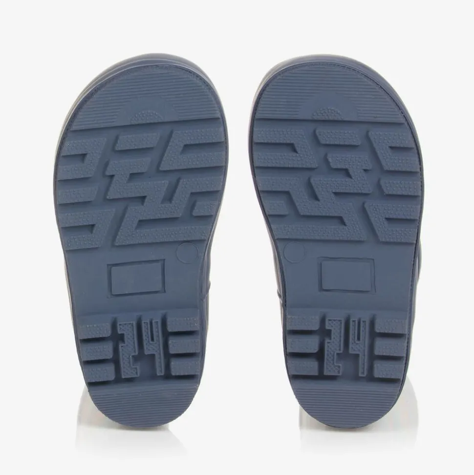 Fun for splashing about, these blue rain boots for boys and girls by British brand Frugi are printed with colourful wavy stripes and white stars. Made from natural flexible rubber, they have a soft fabric lining to keep feet warm and comfortable, with chunky rubber soles for good grip on slippery surfaces. A rubberised logo patch on the side adds a signature finish.