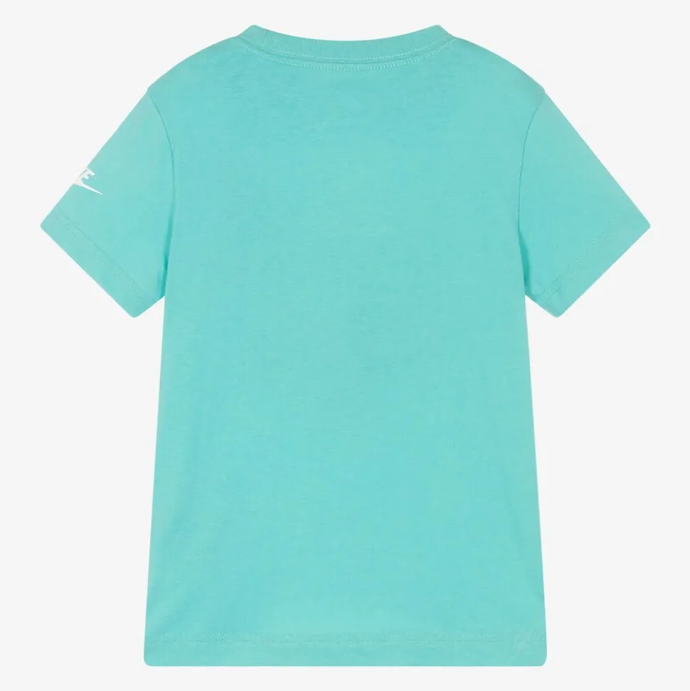 Aqua green T-shirt for boys by Nike, made in a soft and comfortable cotton-blend jersey. This casual tee has short sleeves and the brand's iconic Swoosh logos on the front and on one sleeve for a distinctive statement finish.