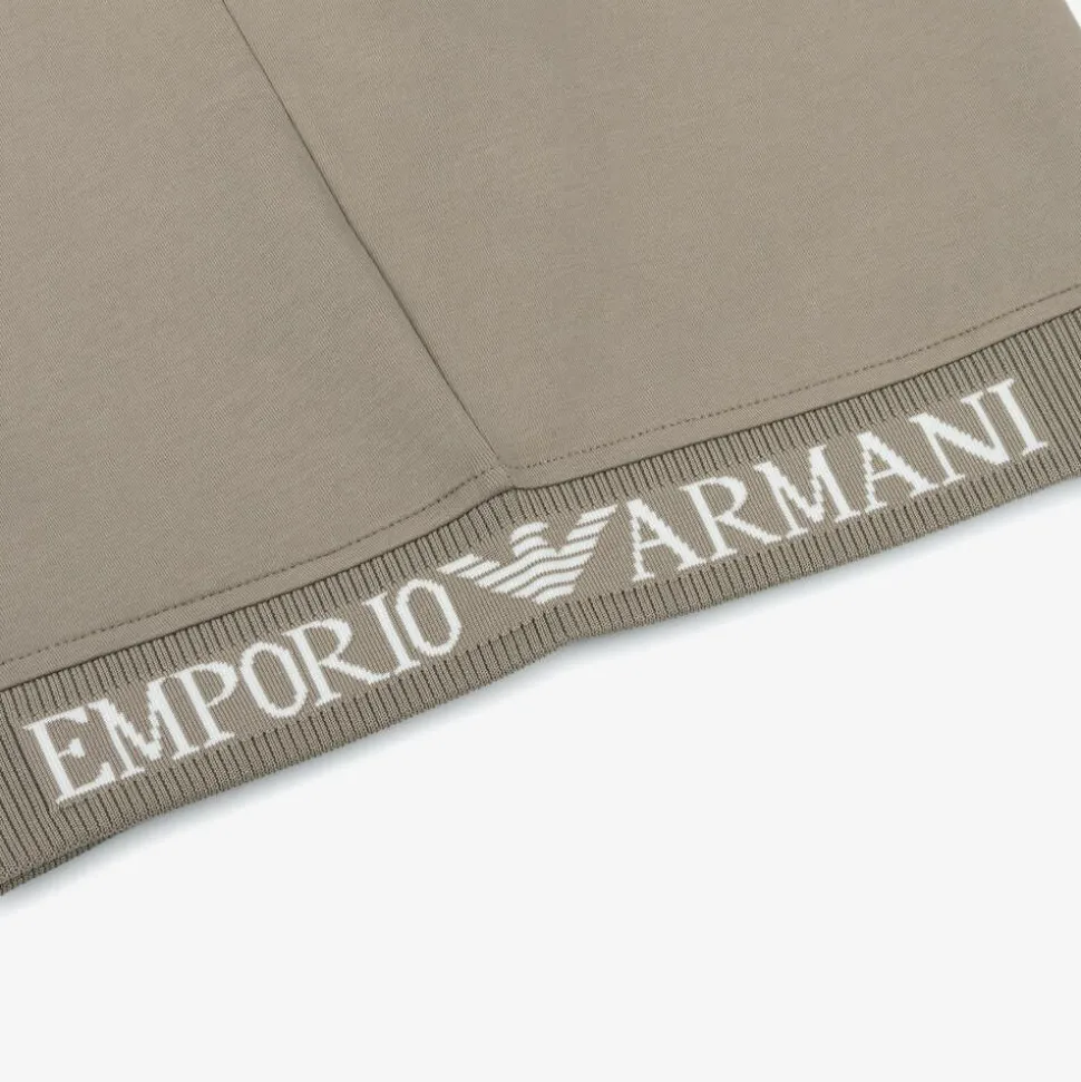 Beige cotton sweatshirt by iconic Italian designer Emporio Armani, adding a designer touch to boys casual wardrobe. Made in soft, lightweight jersey, it has long sleeves, ribbed trims and a jacquard Emporio Armani logo on the hemline.