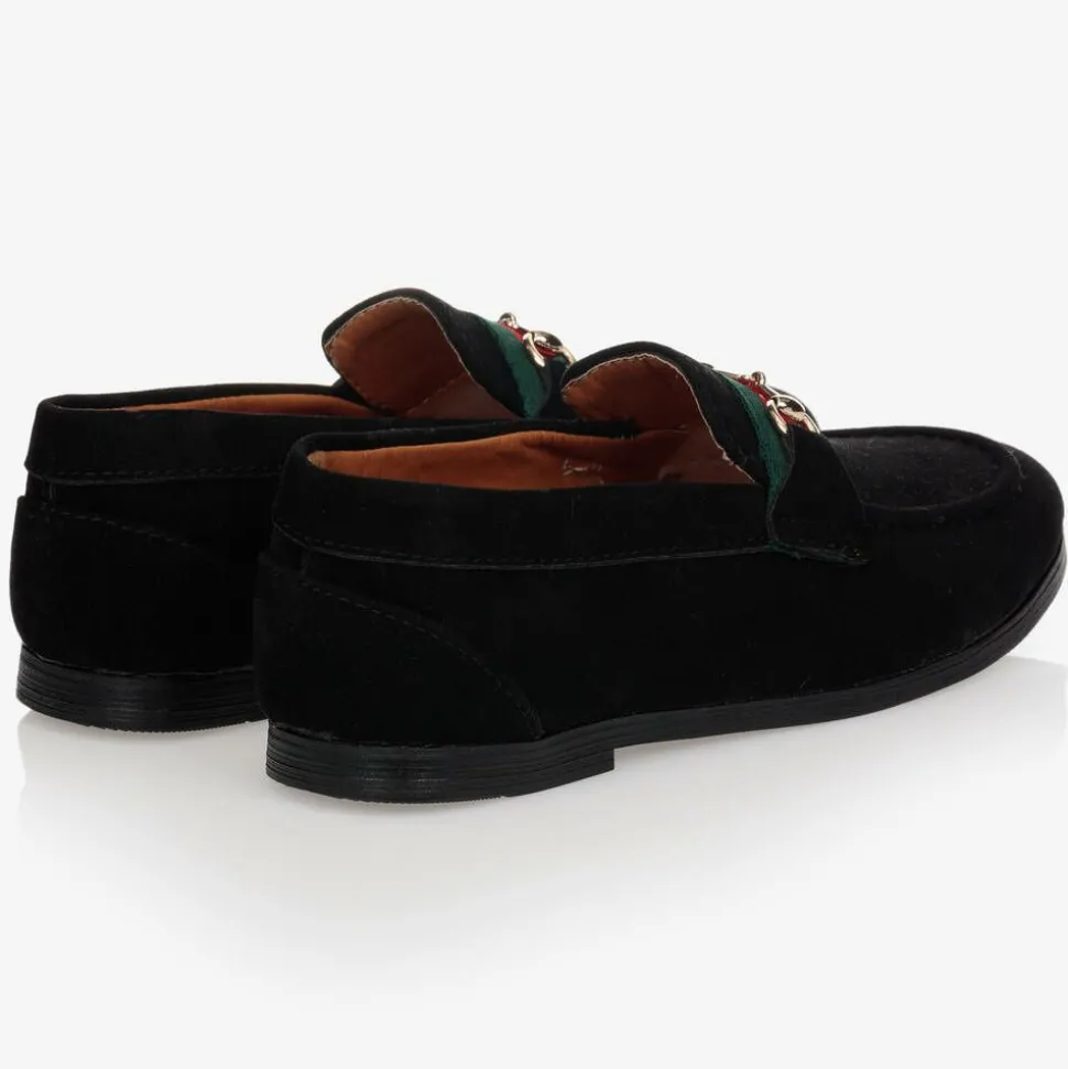 Boys Black Faux Suede Horsebit Loafers