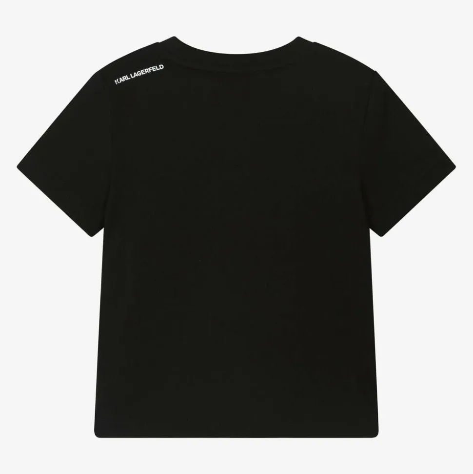Classic, black organic cotton T-shirt for boys by KARL LAGERFELD KIDS. For instant brand recognition, it has a white, 3D logo printed on the chest, and another logo printed on the back of one shoulder. Ideal for casual, relaxed days, this short-sleeved tee is made in soft, comfortable jersey.