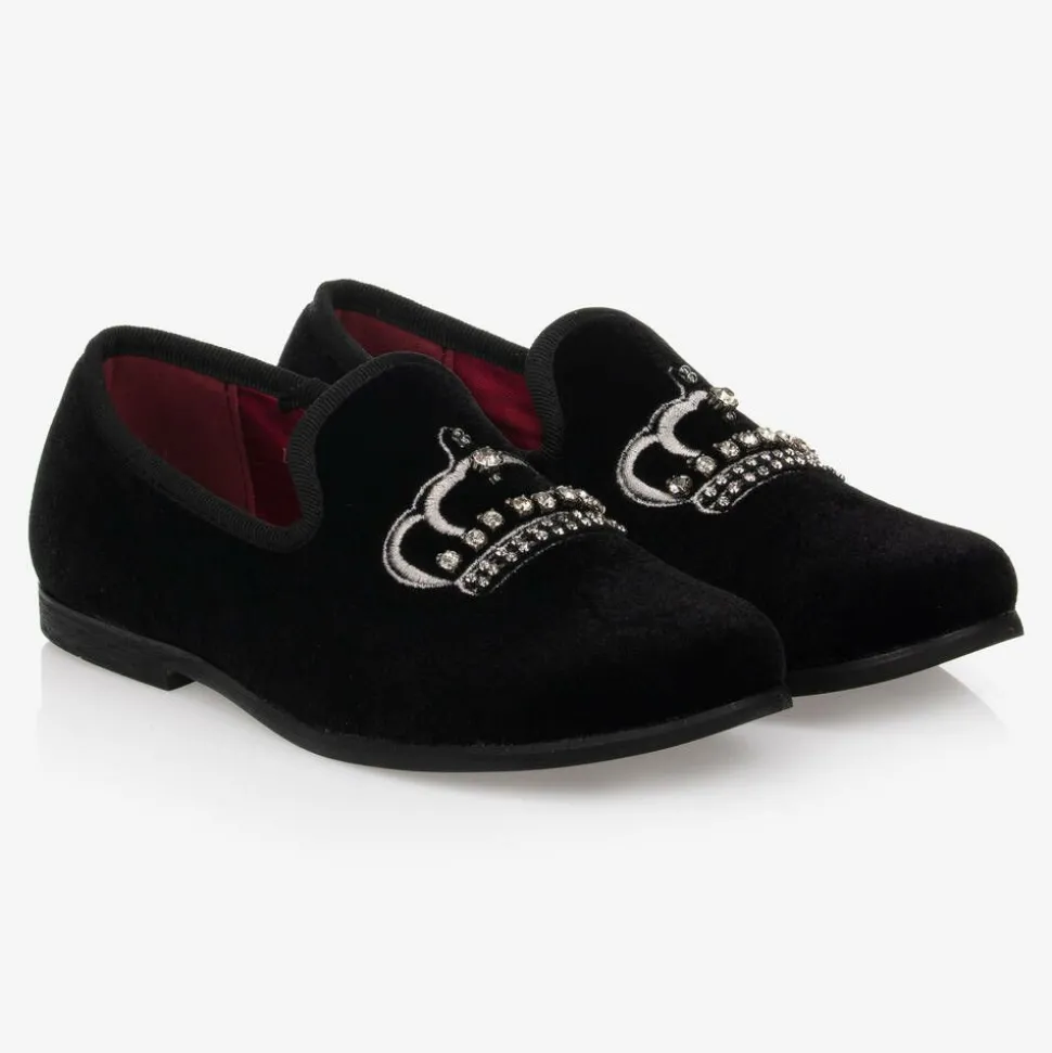 Boys Black Velvet Crown Shoes