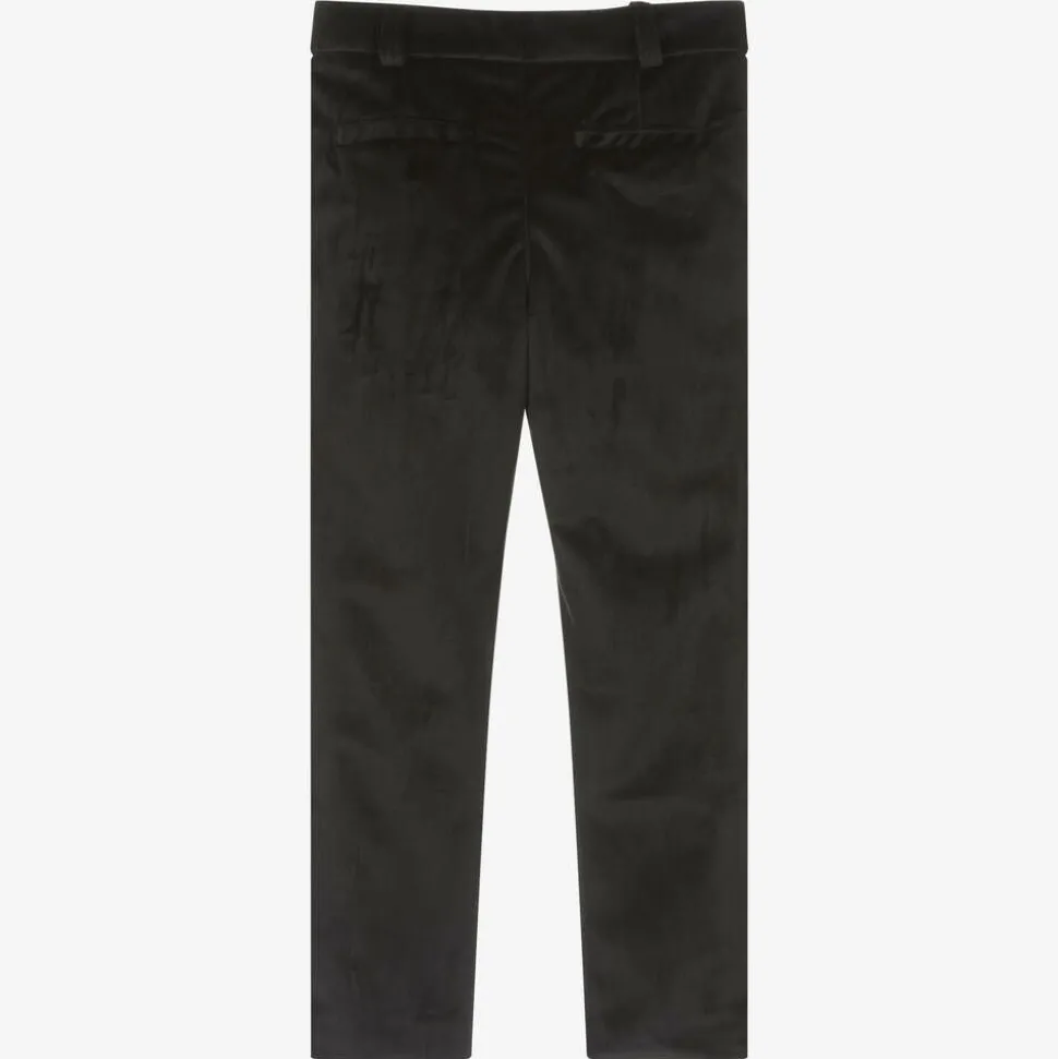 Exclusive to Childrensalon, these smart black trousers for boys by Spanish brand Foque, are made in a super soft velvet. Comfortable to wear, they have front and back pockets, fasten with a pearlescent button and zip and have an adjustable waistband to ensure a good fit.