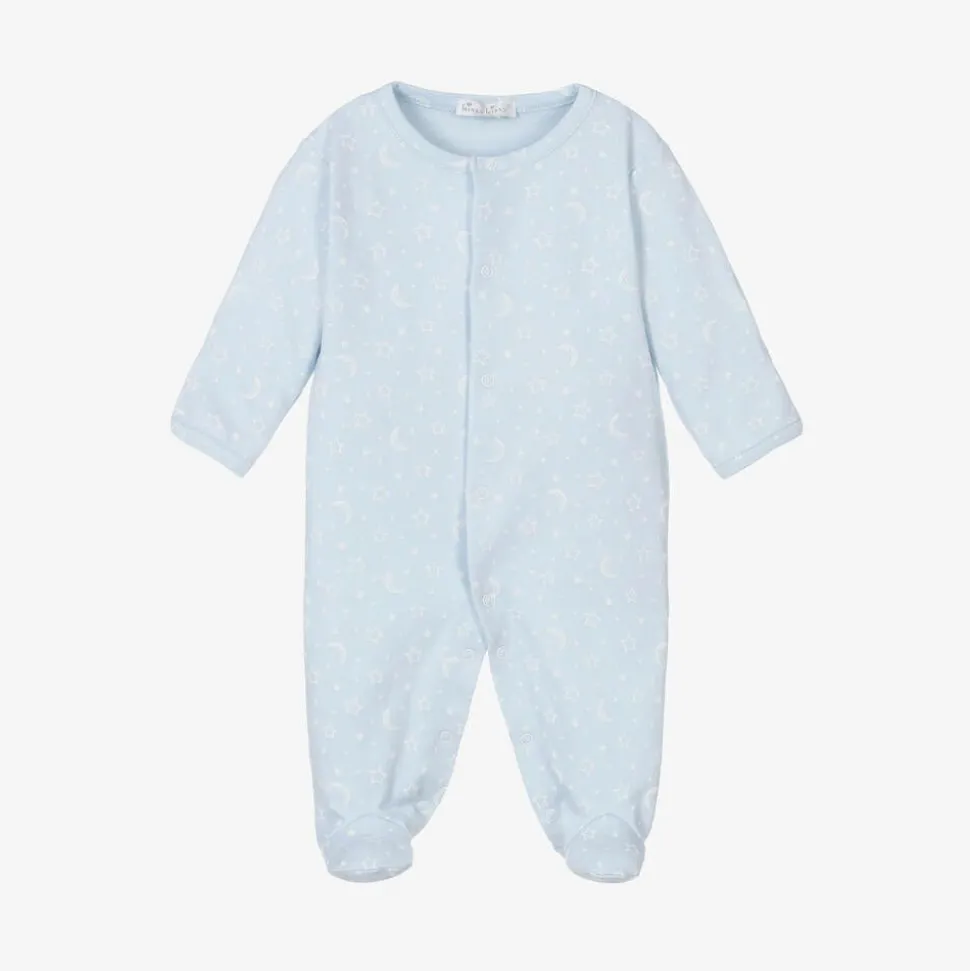 Boys Blue Pima Cotton Crescent Moonlight Babygrow