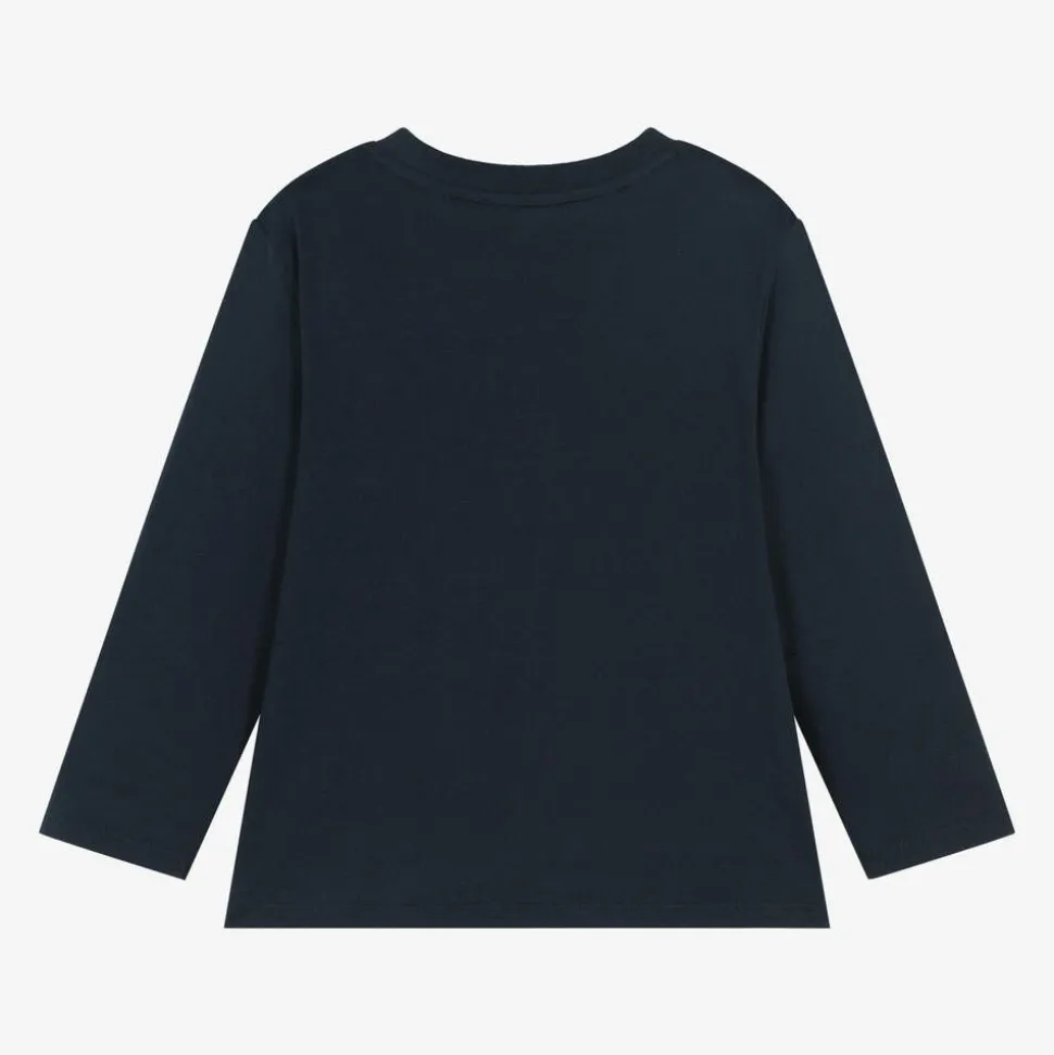 Boys Navy Blue Logo Print Top