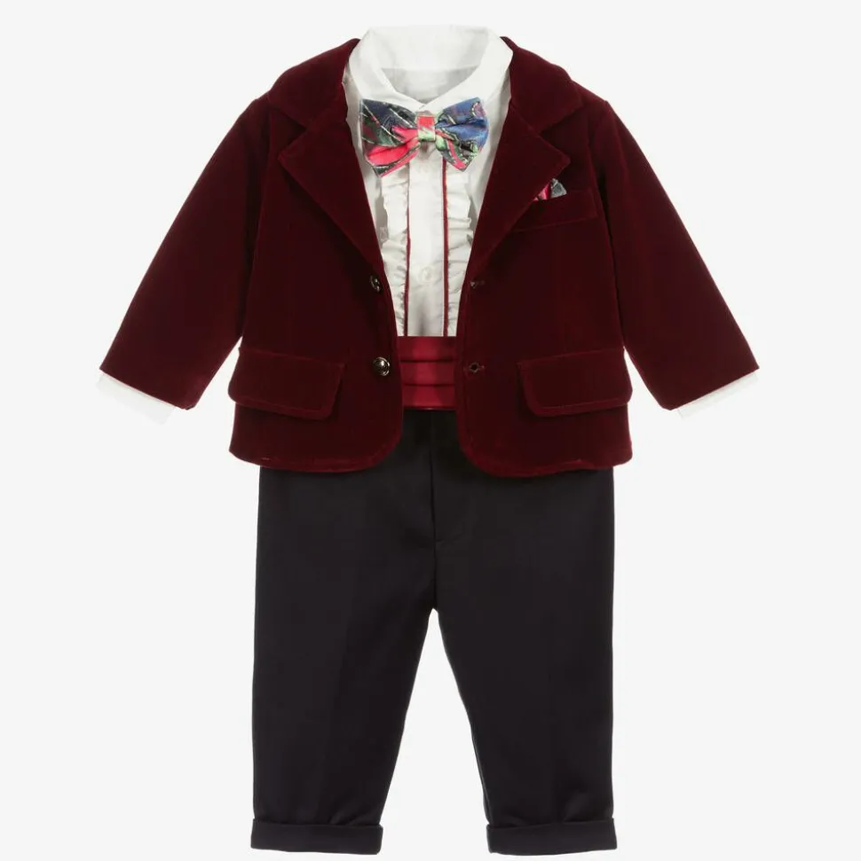 Boys Navy Blue & Red Velvet Suit