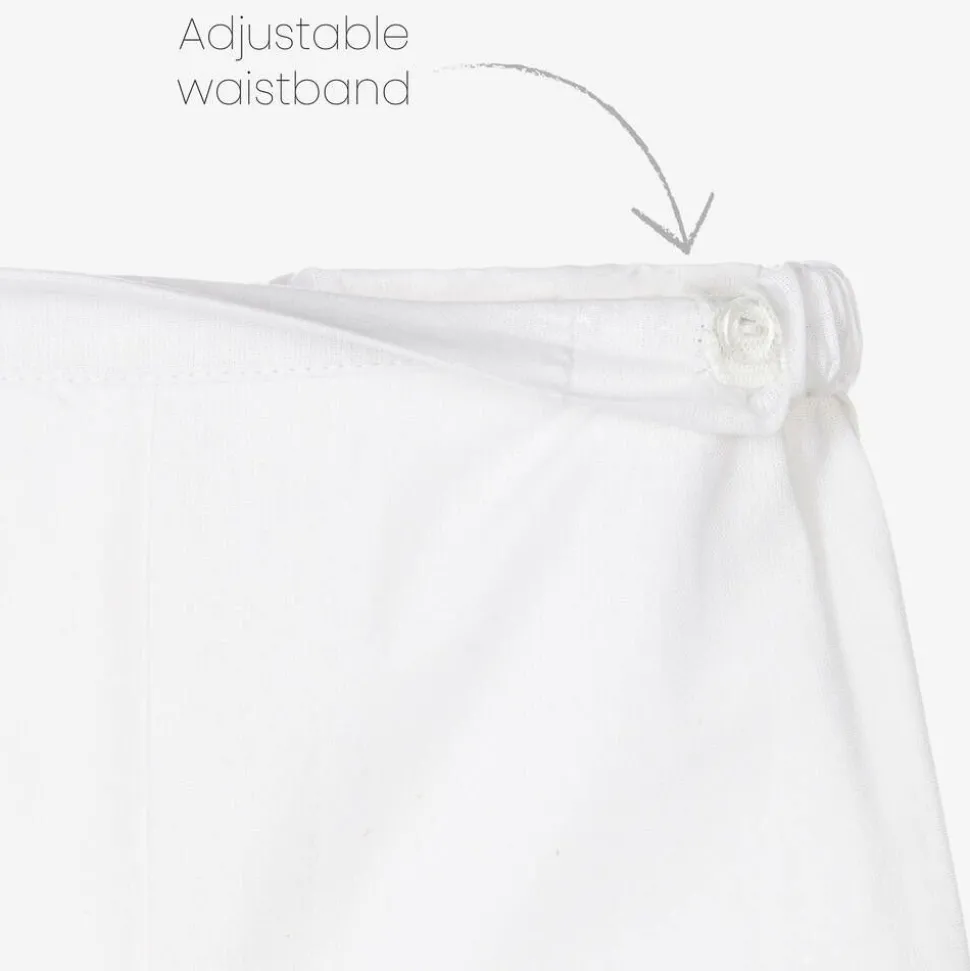 Smart and traditional, this navy blue and white sailor suit for little boys is by Andreeatex. The outfit comprises a cotton shirt, with a jacket, trousers and cap made in lightweight linen with a comfortable cotton lining. The easy pull-on trousers have an adjustable, elasticated waistband for a comfortable fit and the shirt comes with a detachable navy blue bow tie. Completing the look, the jacket and cap have navy blue nautical trims and the jacket has a lovely gold embroidered anchor on the chest, and gold crest button fastenings.