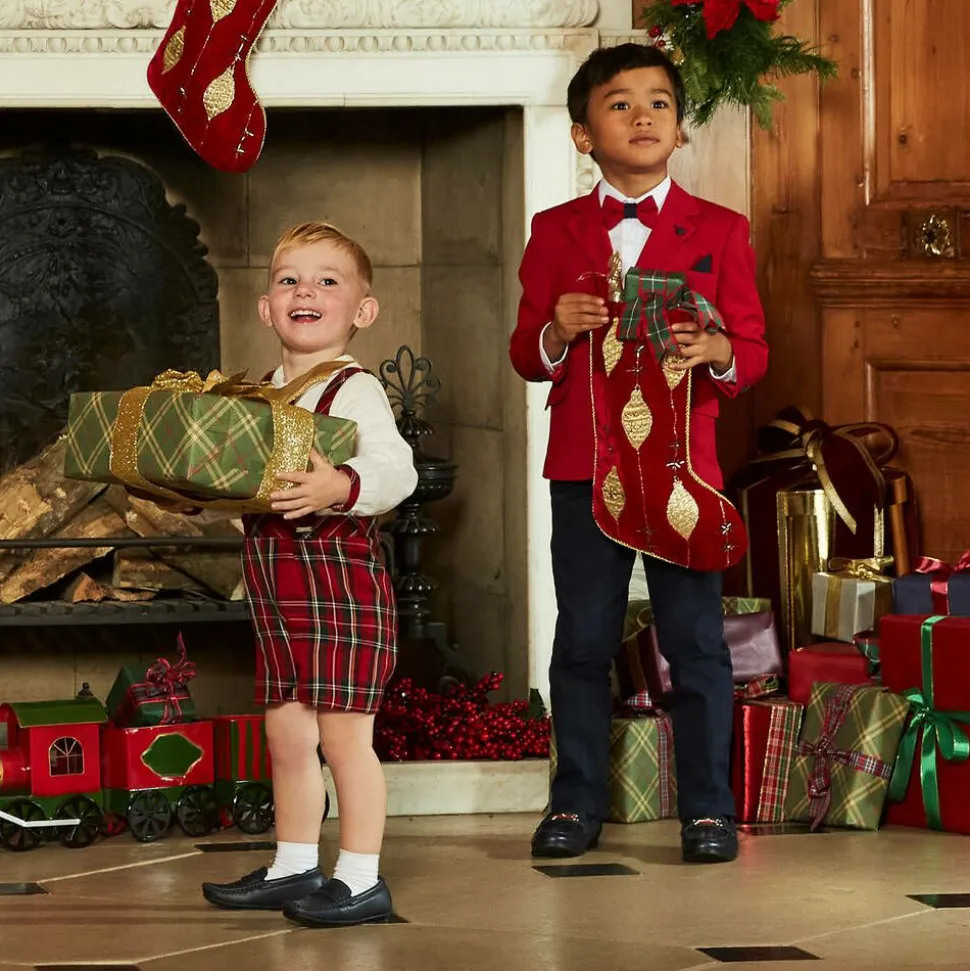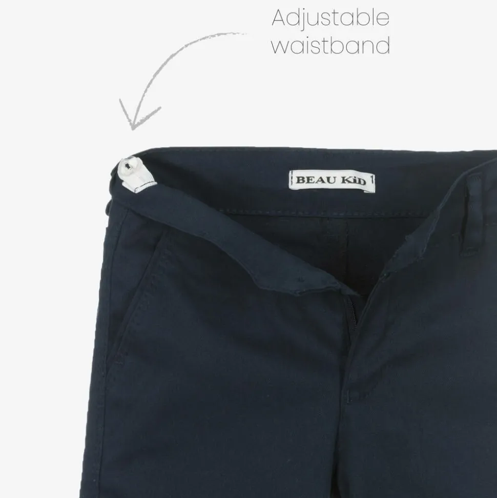A smart red and navy blue suit for boys by Beau KiD. The red blazer comes with a navy blue pocket square and lapel button pin for a classic touch. It is vented on the back for ease of movement. The navy blue trousers have front pockets, an adjustable waist and a button and zip fastening. A white shirt, faux leather belt and a red and navy blue bow tie complete the special occasion look.