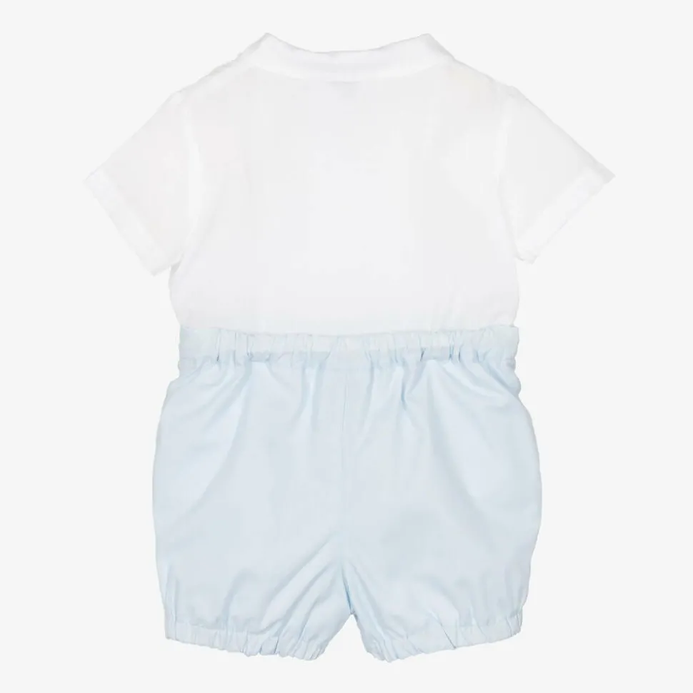 Boys White & Blue Cotton Buster Suit