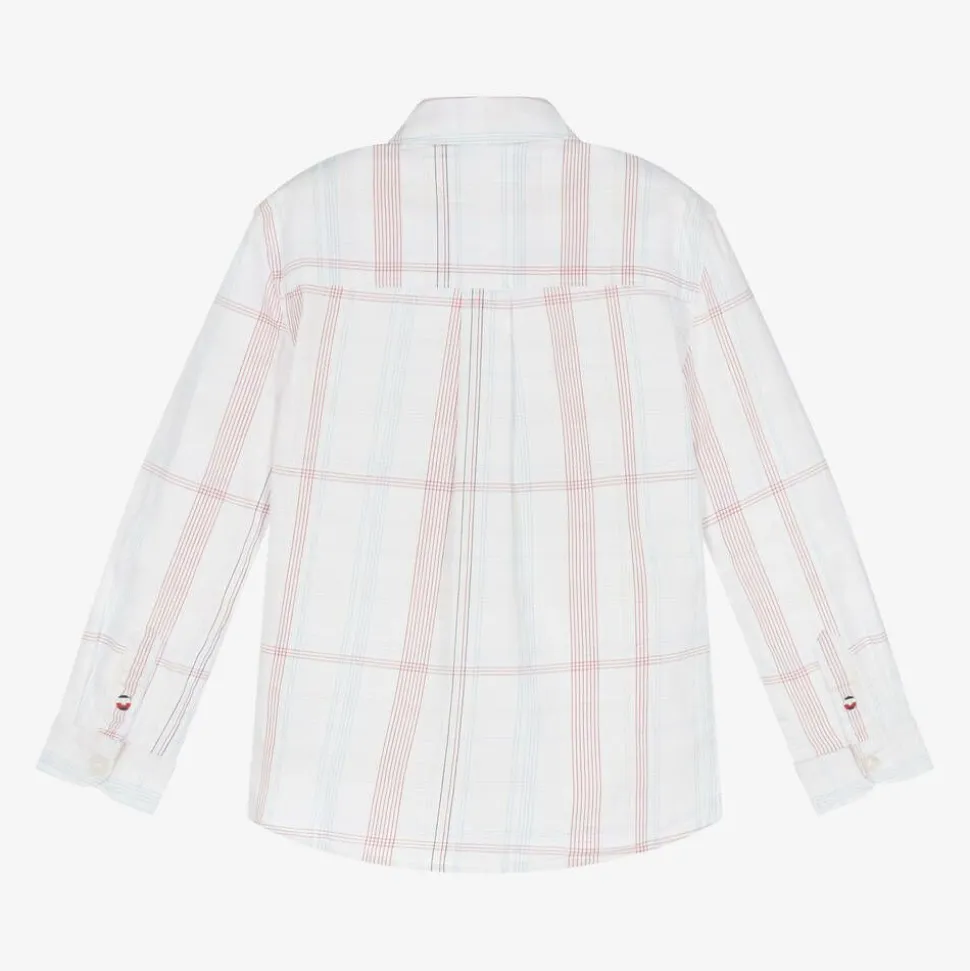 Boys White Cotton Checked Shirt