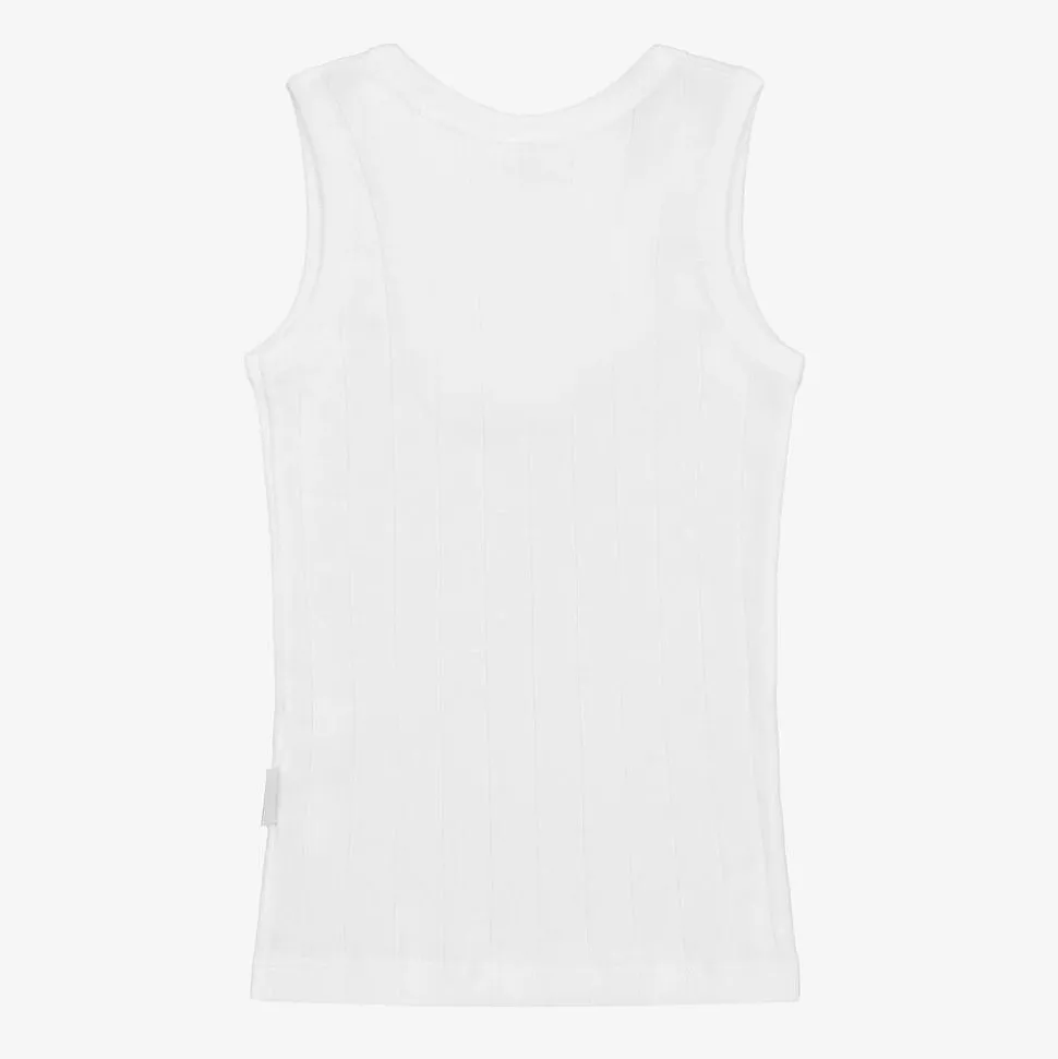 A white vest for boys by Diacar. Made from soft cotton jersey with a subtle pinstripe pattern, this simple top is comfortable to wear and easy to layer under clothes for additional warmth.
