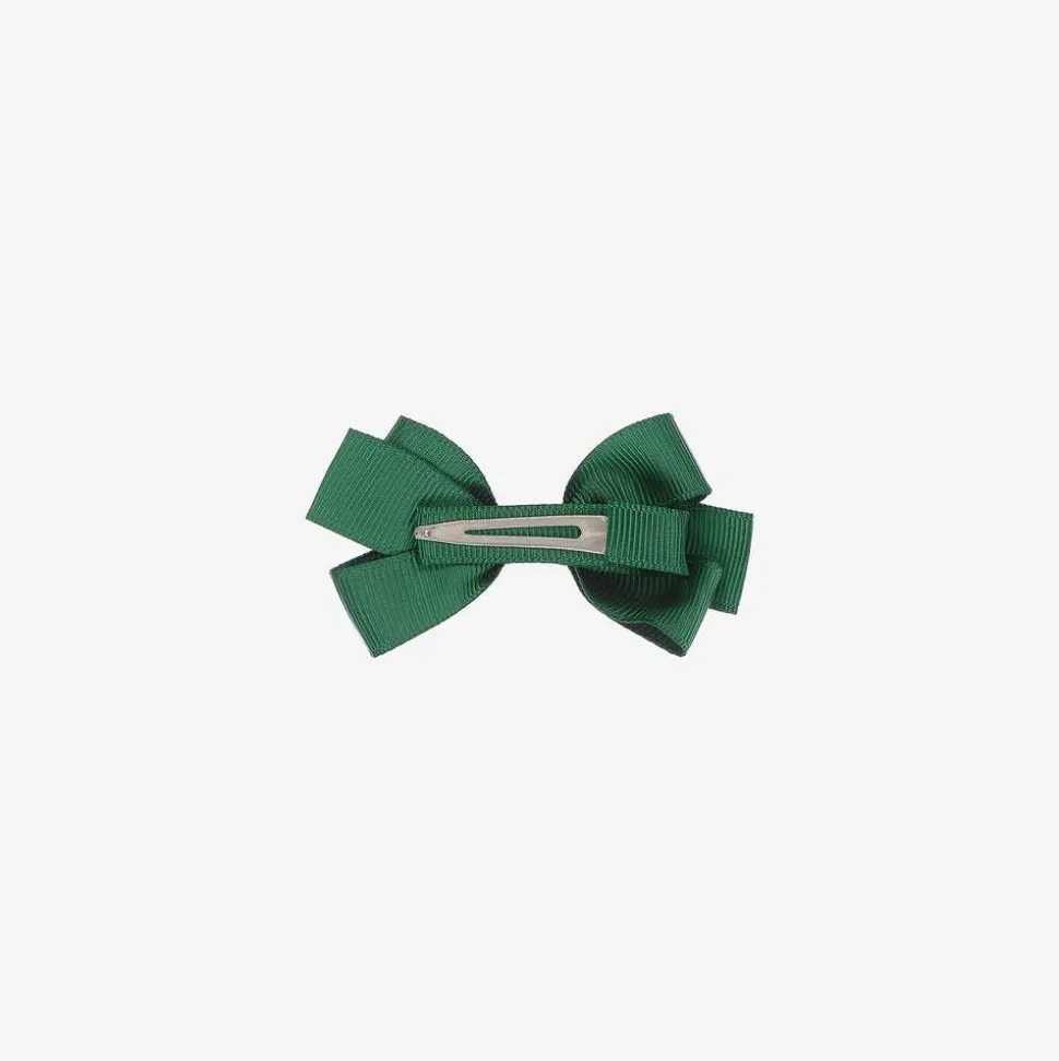 Girls pretty dark green bow hair clip by Peach Ribbons. Lovely to complete an outfit, this hair accessory is made in grosgrain ribbon and set on a metal clip.