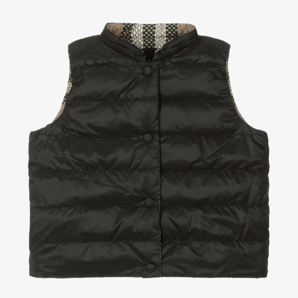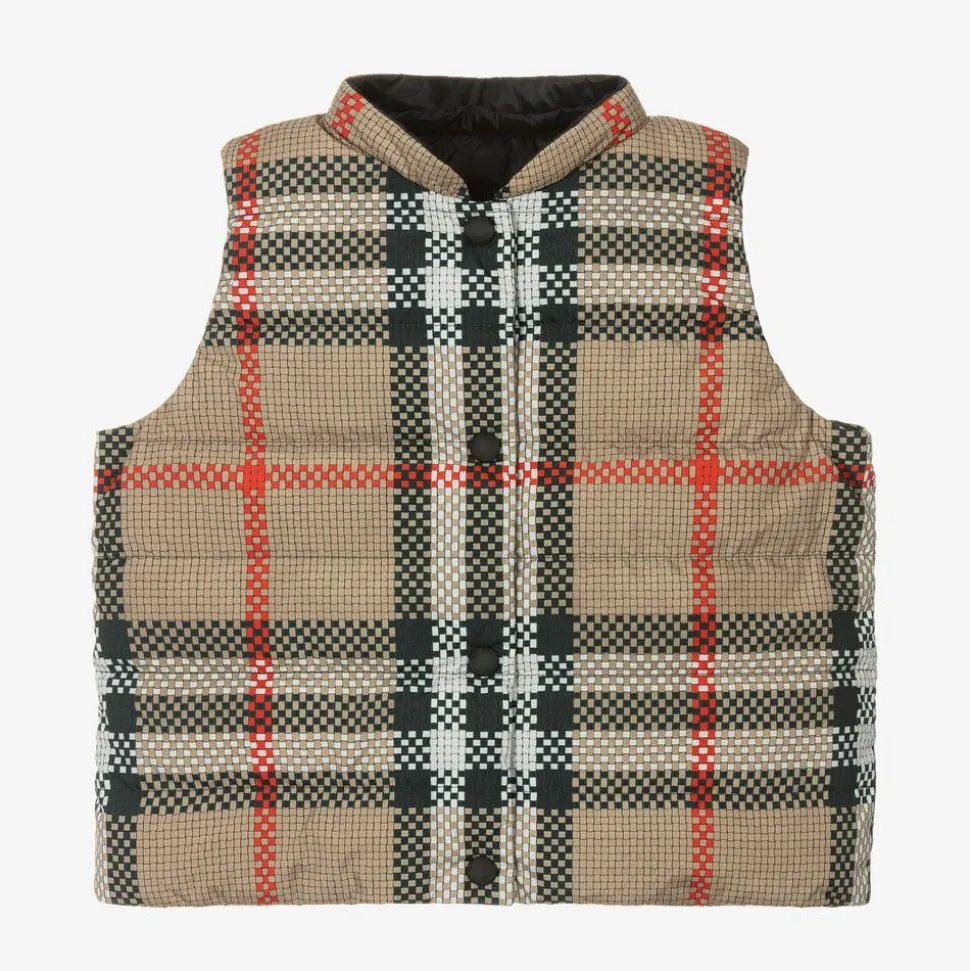 Girls Beige Reversible Check Gilet