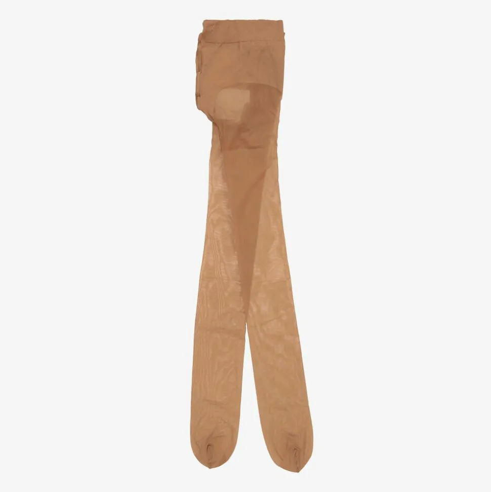 Sheer beige tights for girls by Falke, with a 30 denier matt finish. Soft and stretchy, they have reinforced toe and panty sections for durability and flat seams for a comfortable, pressure-free fit on the toes and waist.